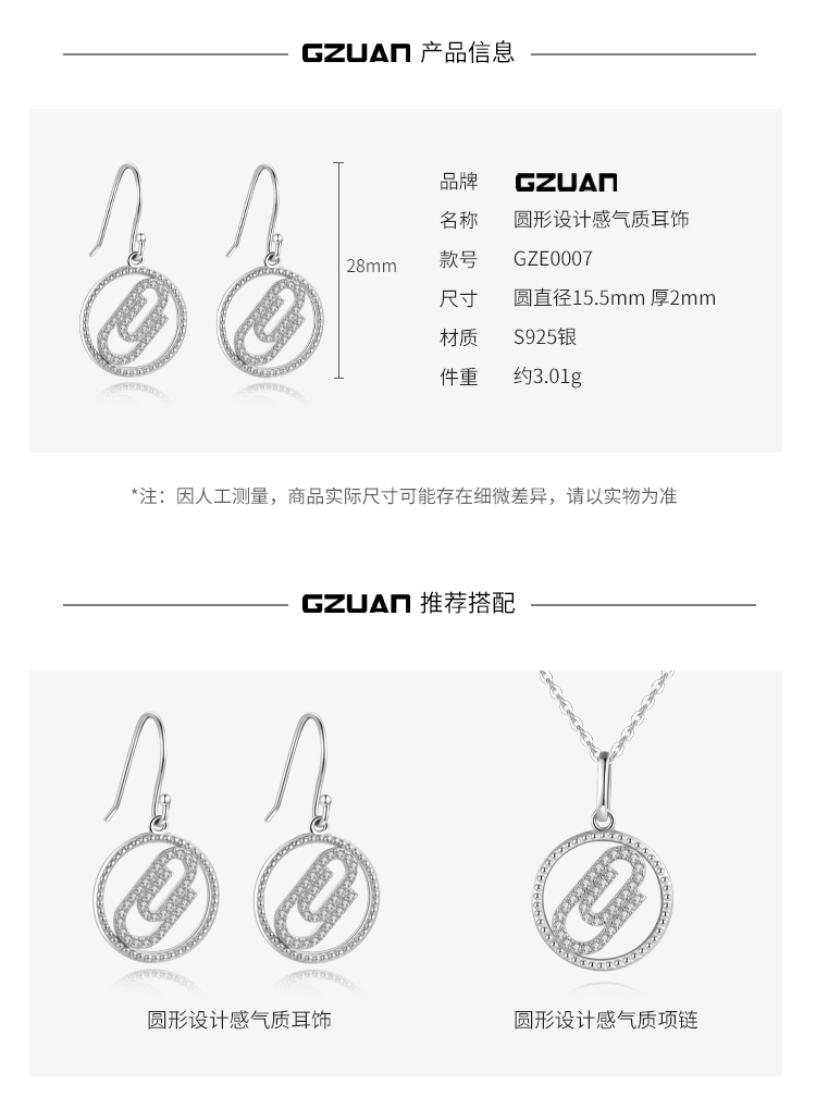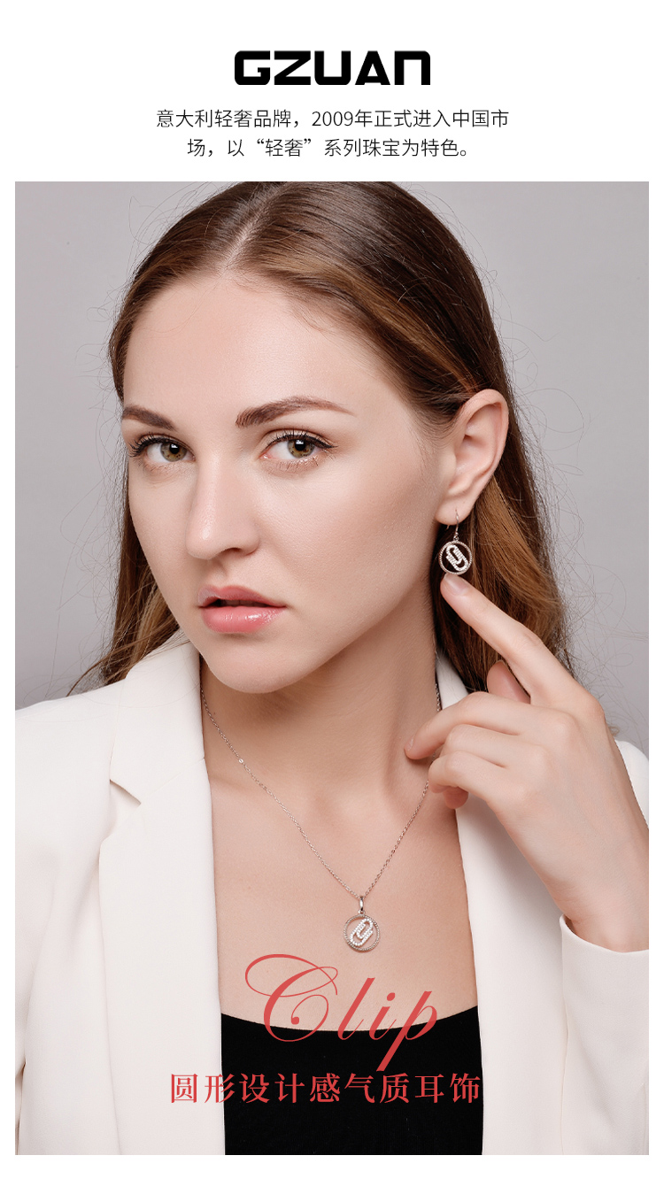 商品名称:GZUAN古钻珠宝 Clip 圆形设计感女士气质耳钉耳环 GZE0007 拿铁色