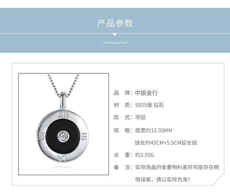 商品名称:中银金行S925银镶钻石项链男女皆可戴送女友礼物(单位:件) 银色