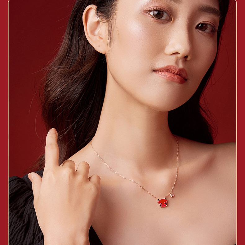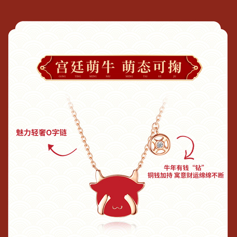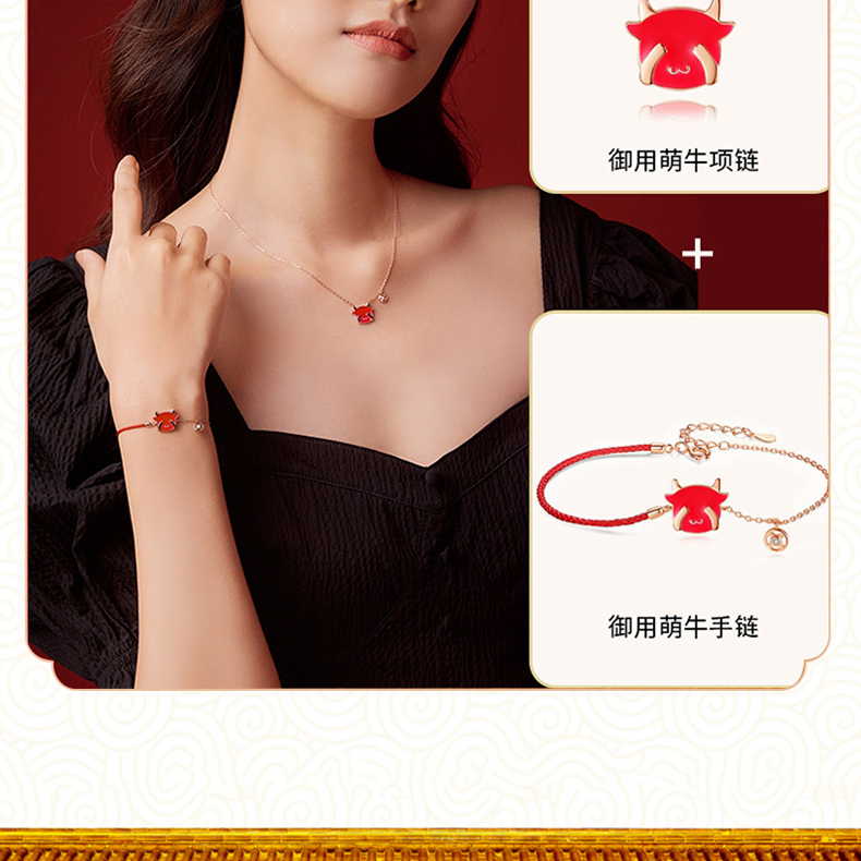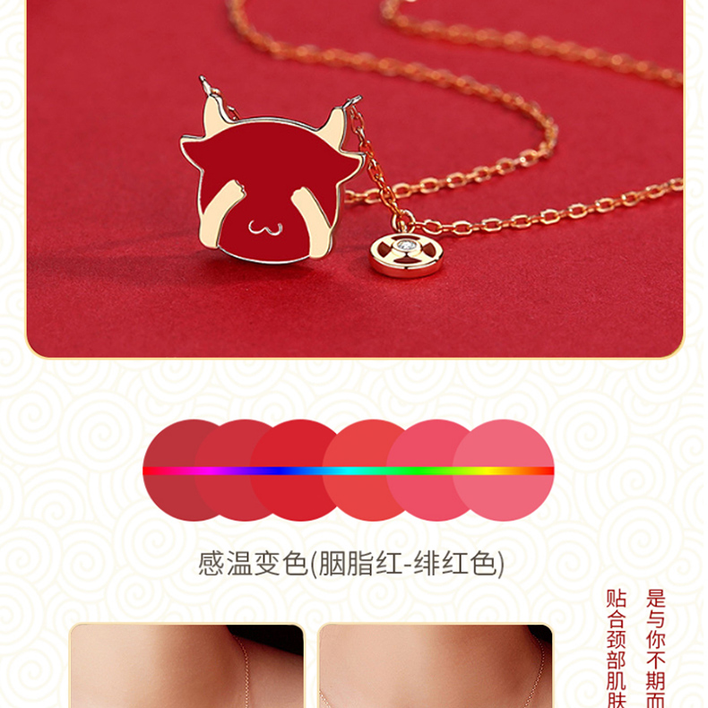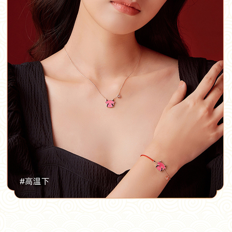 商品名称:中银金行S925银玫瑰金变色萌牛套链(单位:件) 玫瑰红色