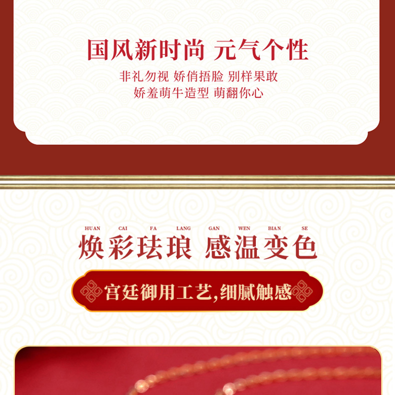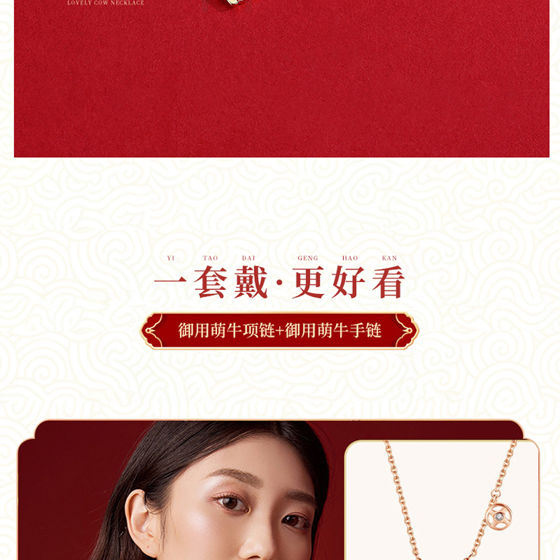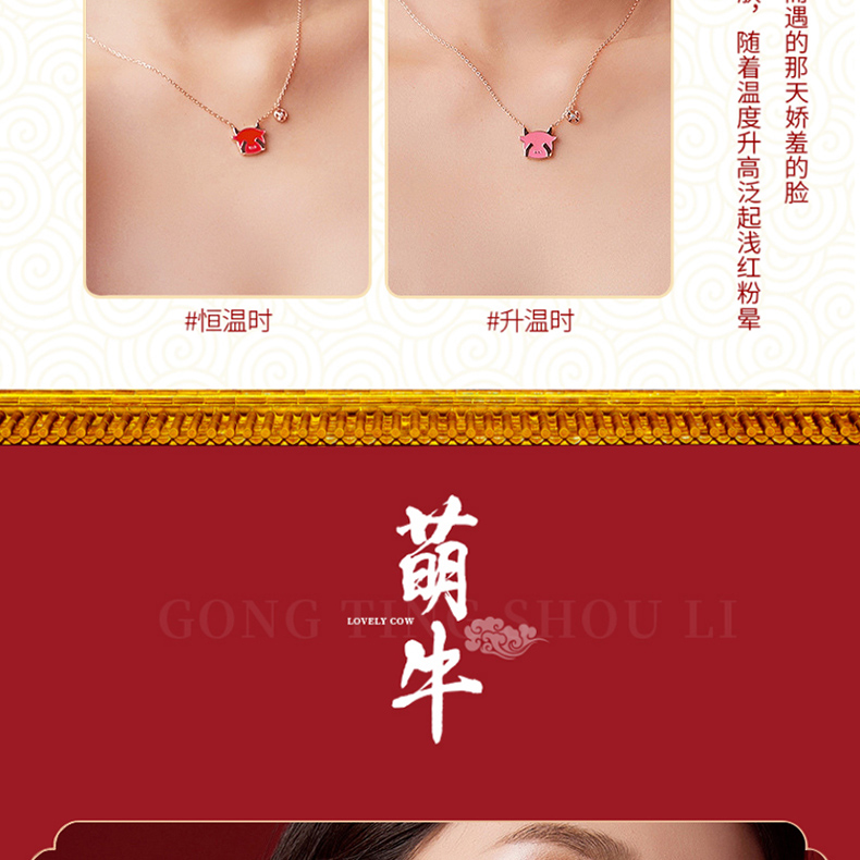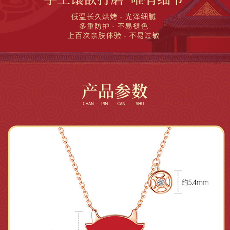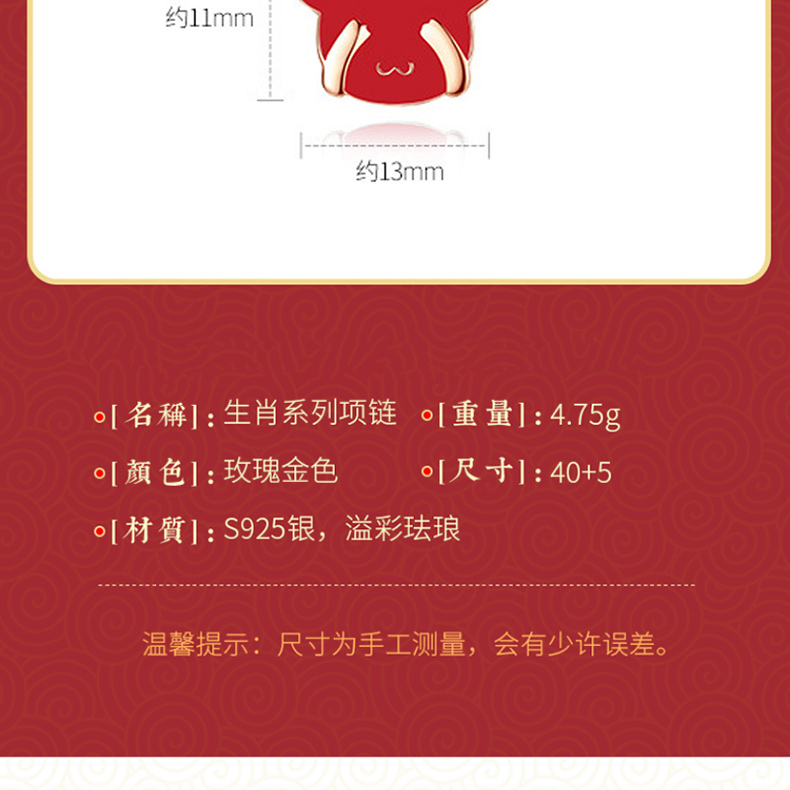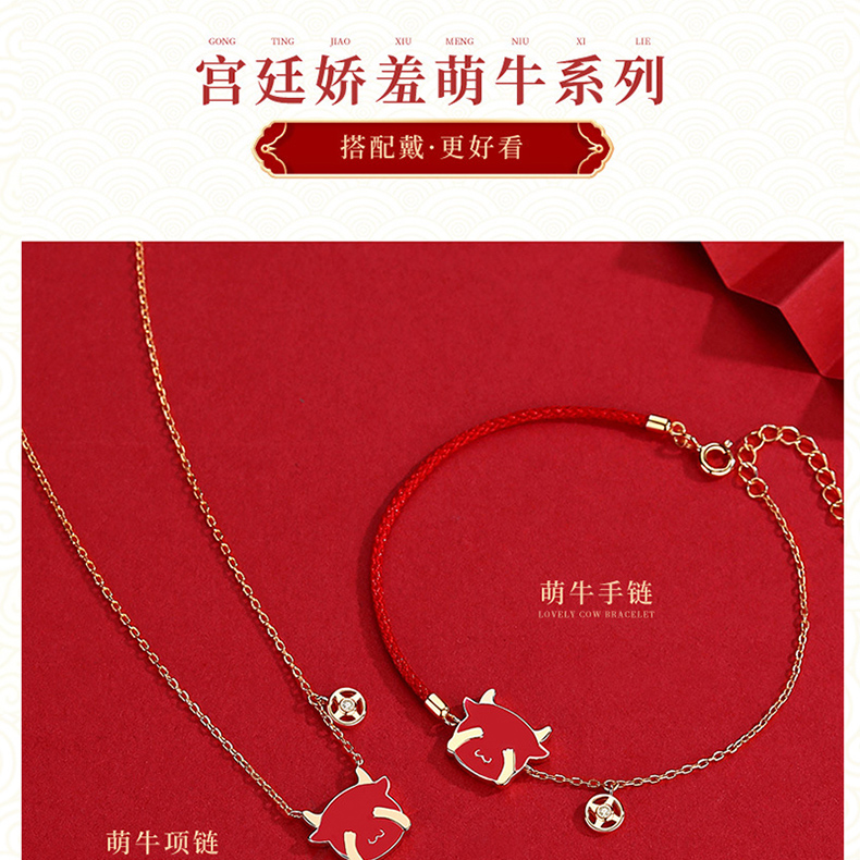 商品名称:中银金行S925银玫瑰金变色萌牛套链(单位:件) 玫瑰红色