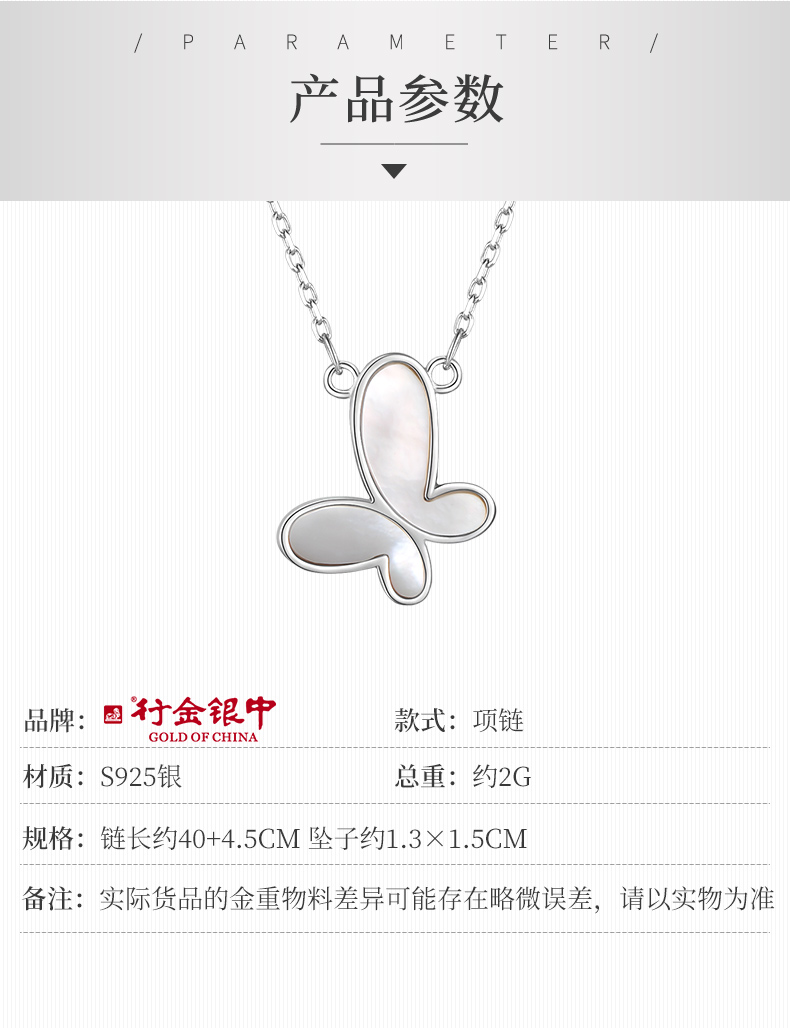 商品名称:中银金行甜美系蝴蝶项链S925银项链(单位:件) 银色