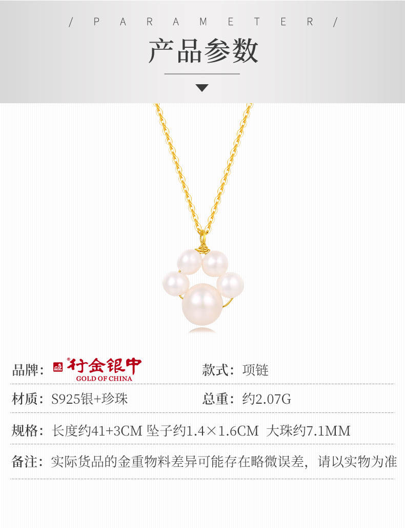 商品名称:中银金行S925银淡水珍珠可爱猫爪项链(单位:件) 黄色