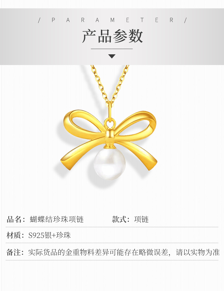 商品名称:中银金行S925银珍珠蝴蝶结项链(单位:件) 黄色