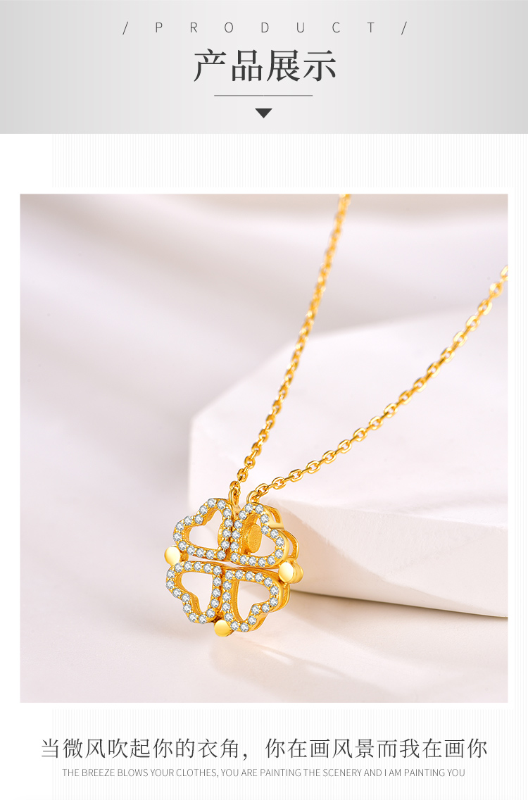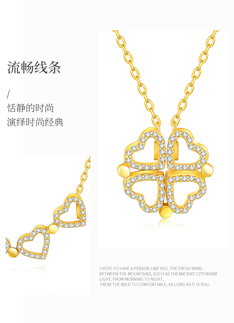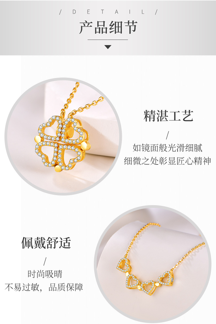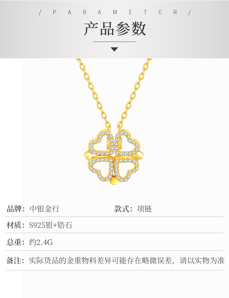 商品名称:中银金行S925银锆石四叶草一款心形两戴项链(单位:件) 黄色
