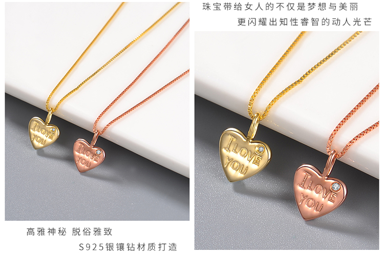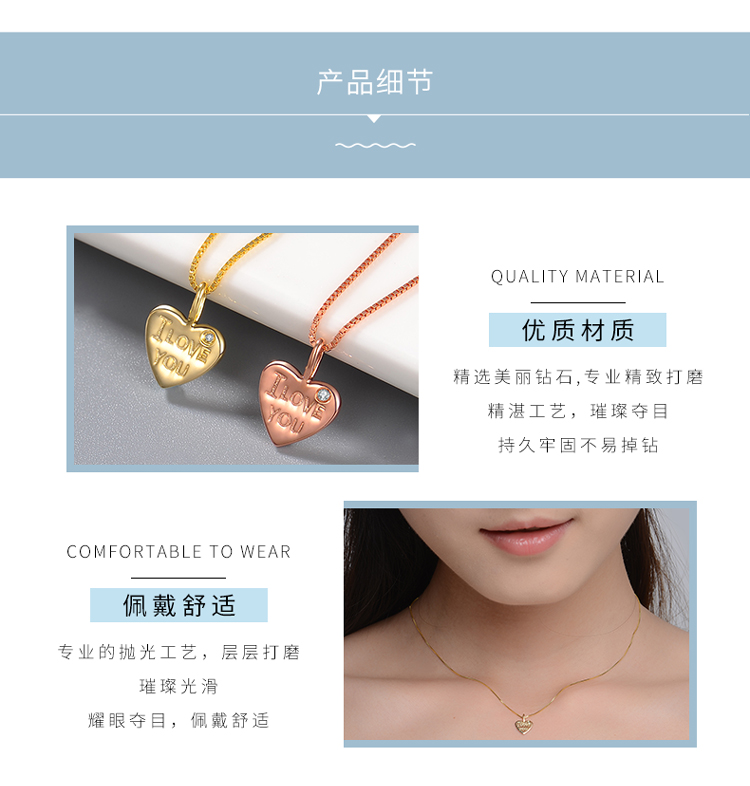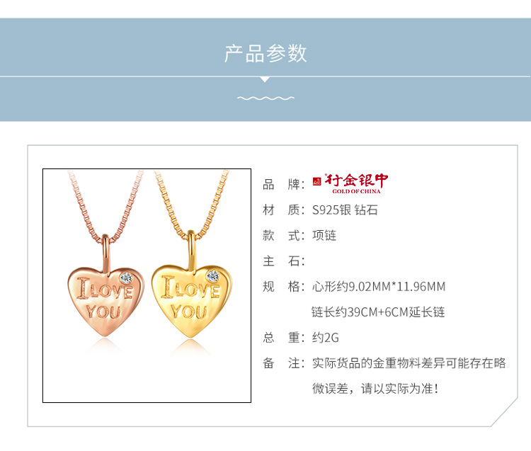 商品名称:中银金行【不失联的爱】银镶钻石项链浪漫爱心锁骨链字母925银套链(单位:件) 黄色
