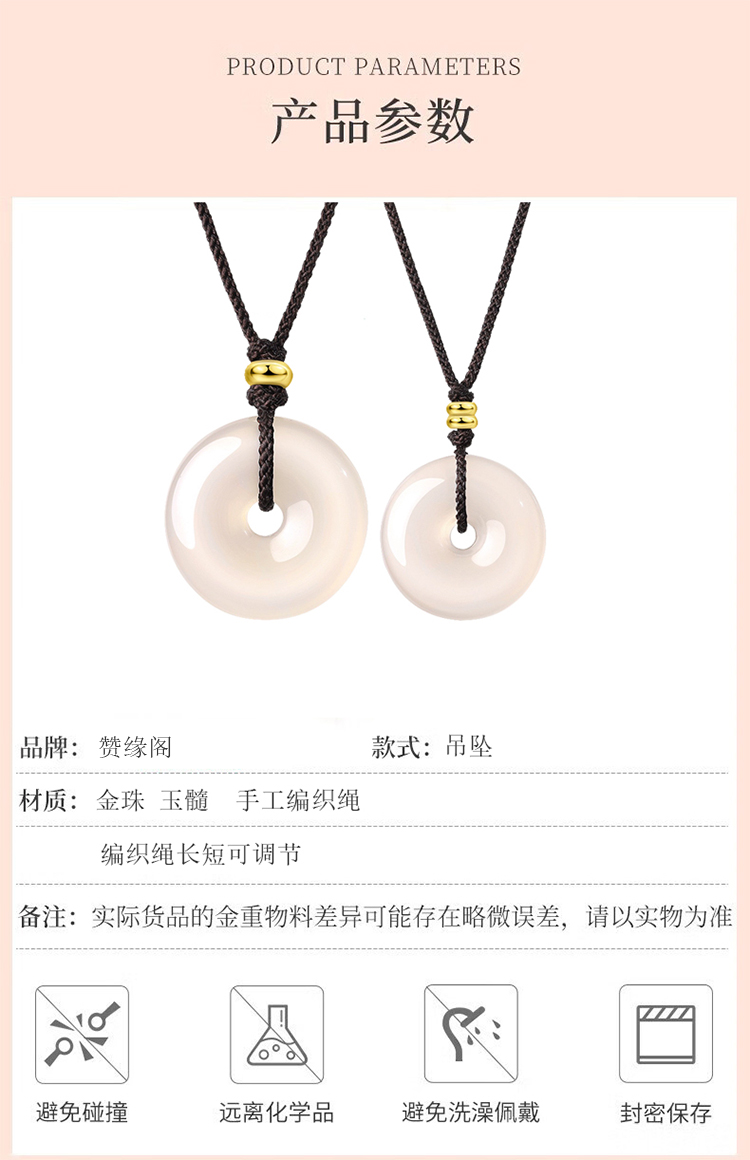 商品名称:赞缘阁 足金金珠玉髓平安扣吊坠YSPA2(单位:件) 本白色