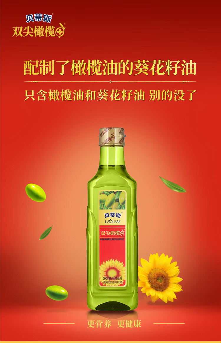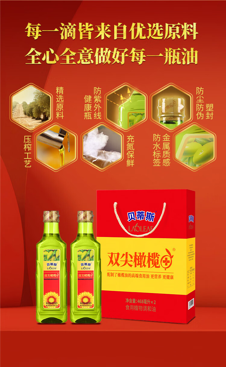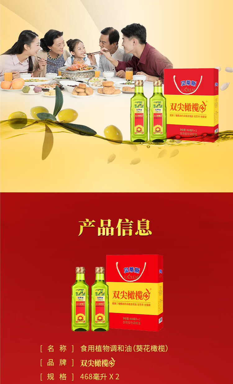 商品名称:贝蒂斯橄榄葵花籽油468ml*2瓶礼盒 自然色