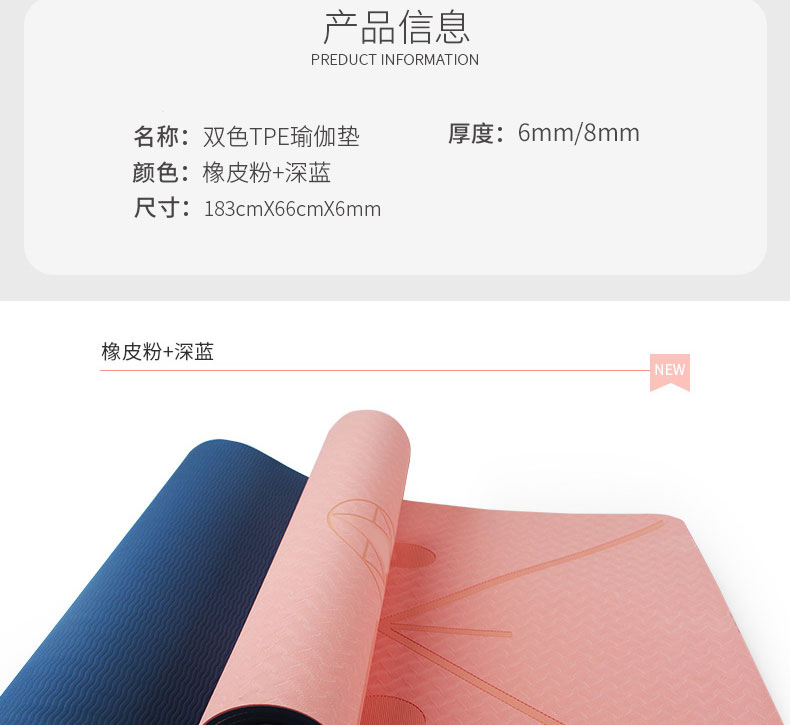 商品名称:SMOOKY瑜伽垫健身垫TPE防滑加厚加宽1830*800*8mm 粉色