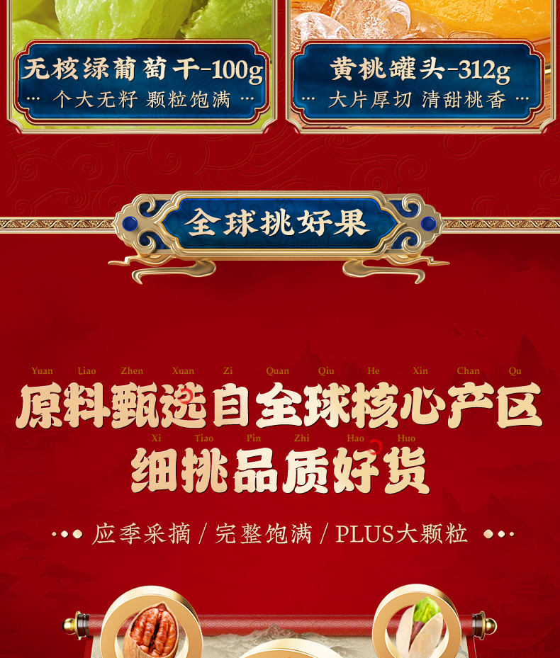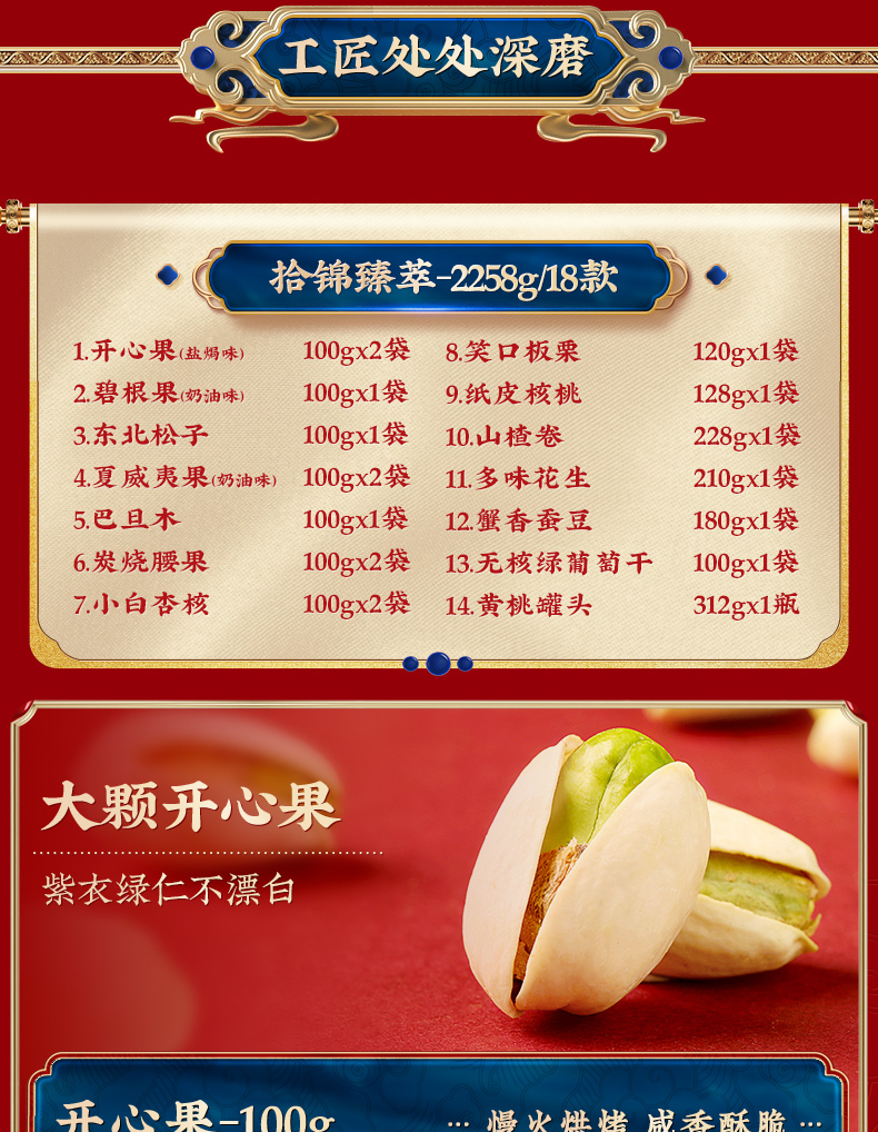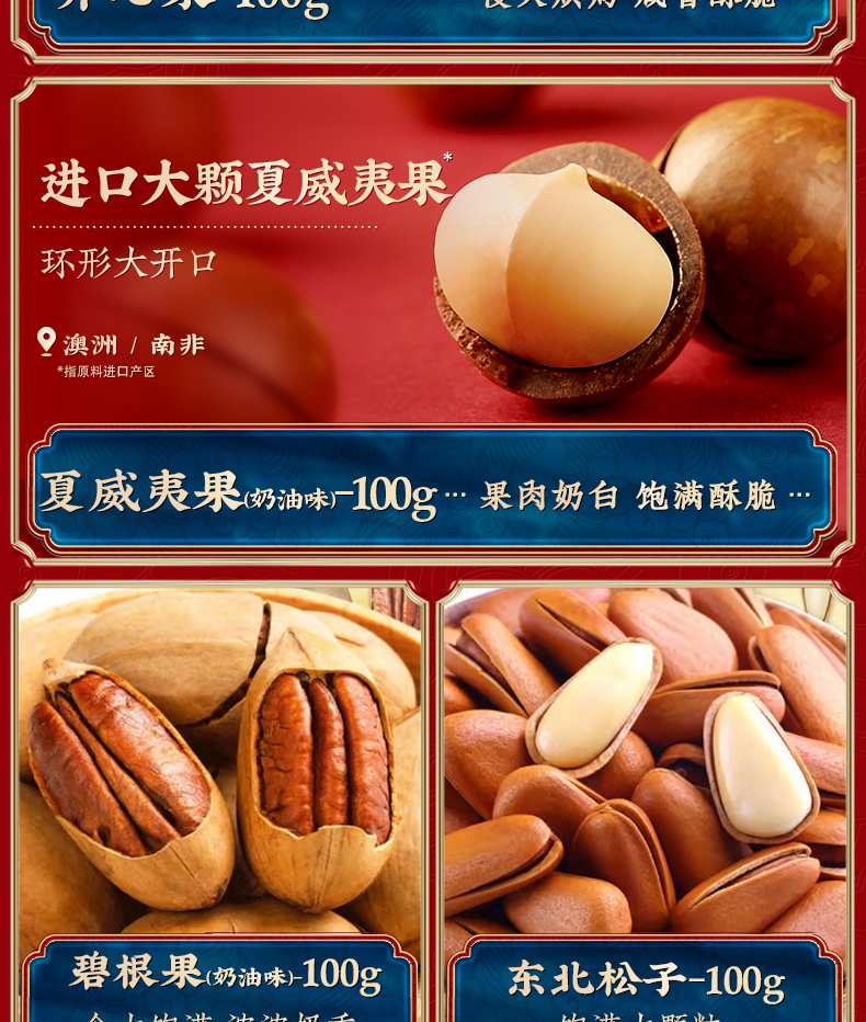 商品名称:百草味拾锦臻萃坚果礼盒2258g(单位:盒) 红色