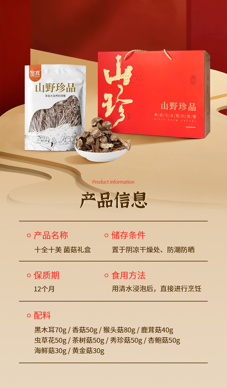 商品名称:圣耳 山珍大礼包500g*1箱 红色