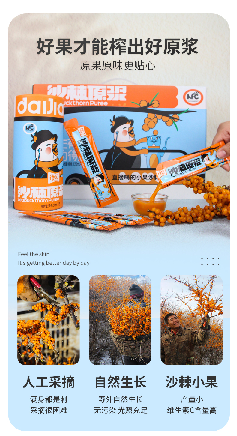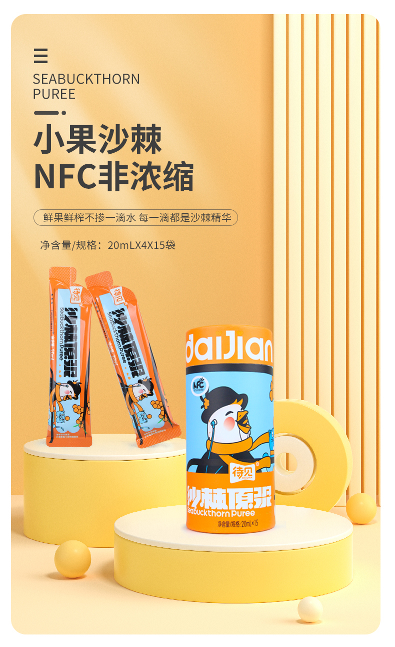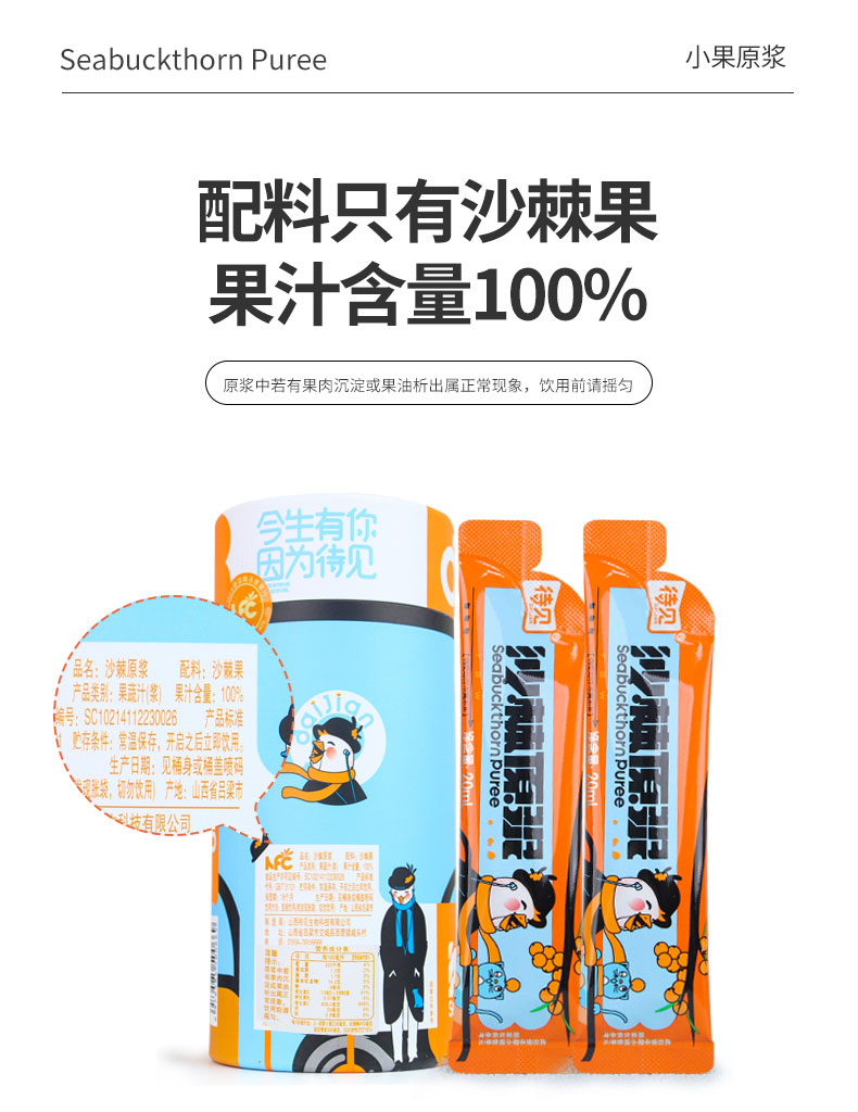 商品名称:待见NFC沙棘原浆20mlx15条x2罐*1组 灰橙色
