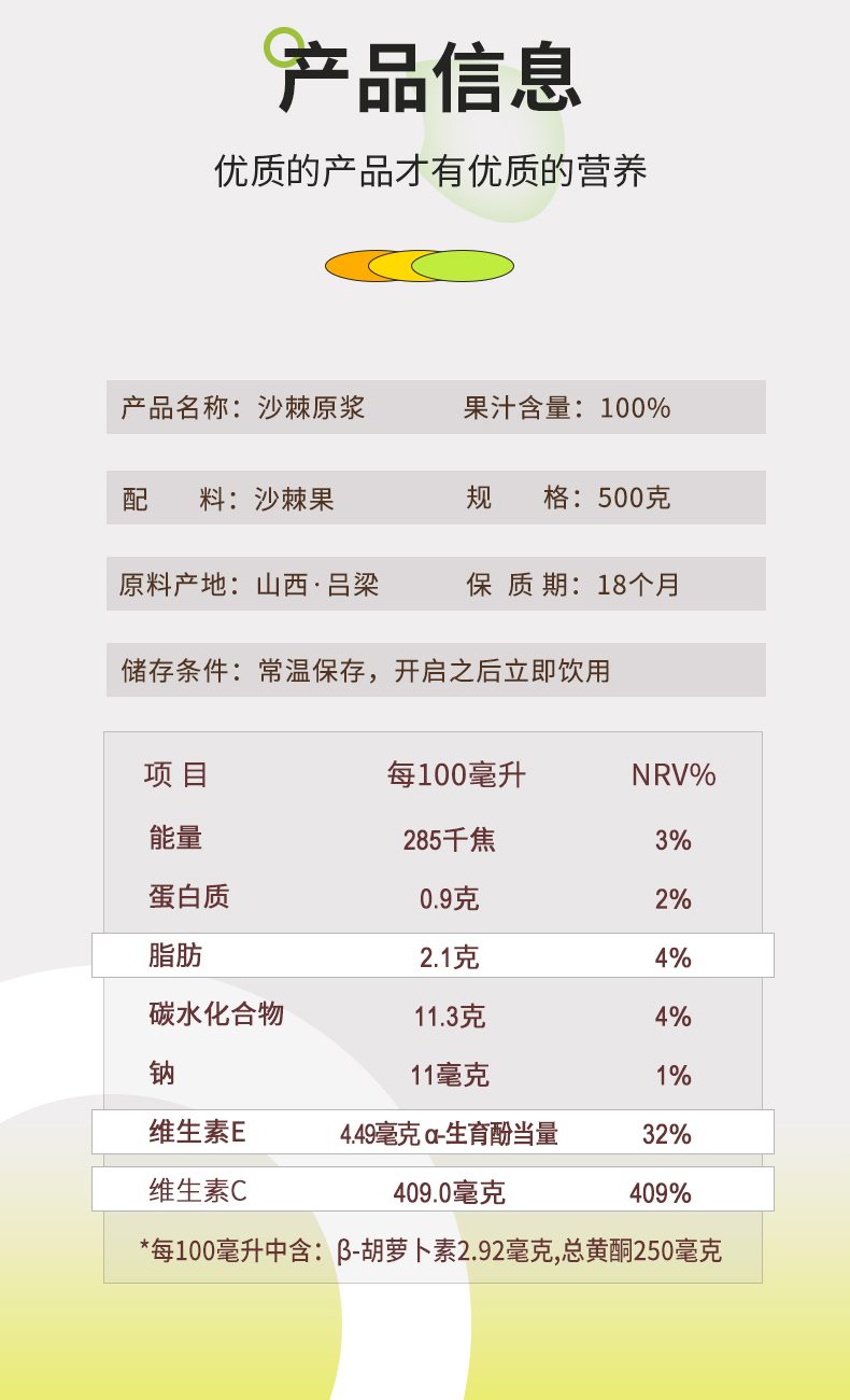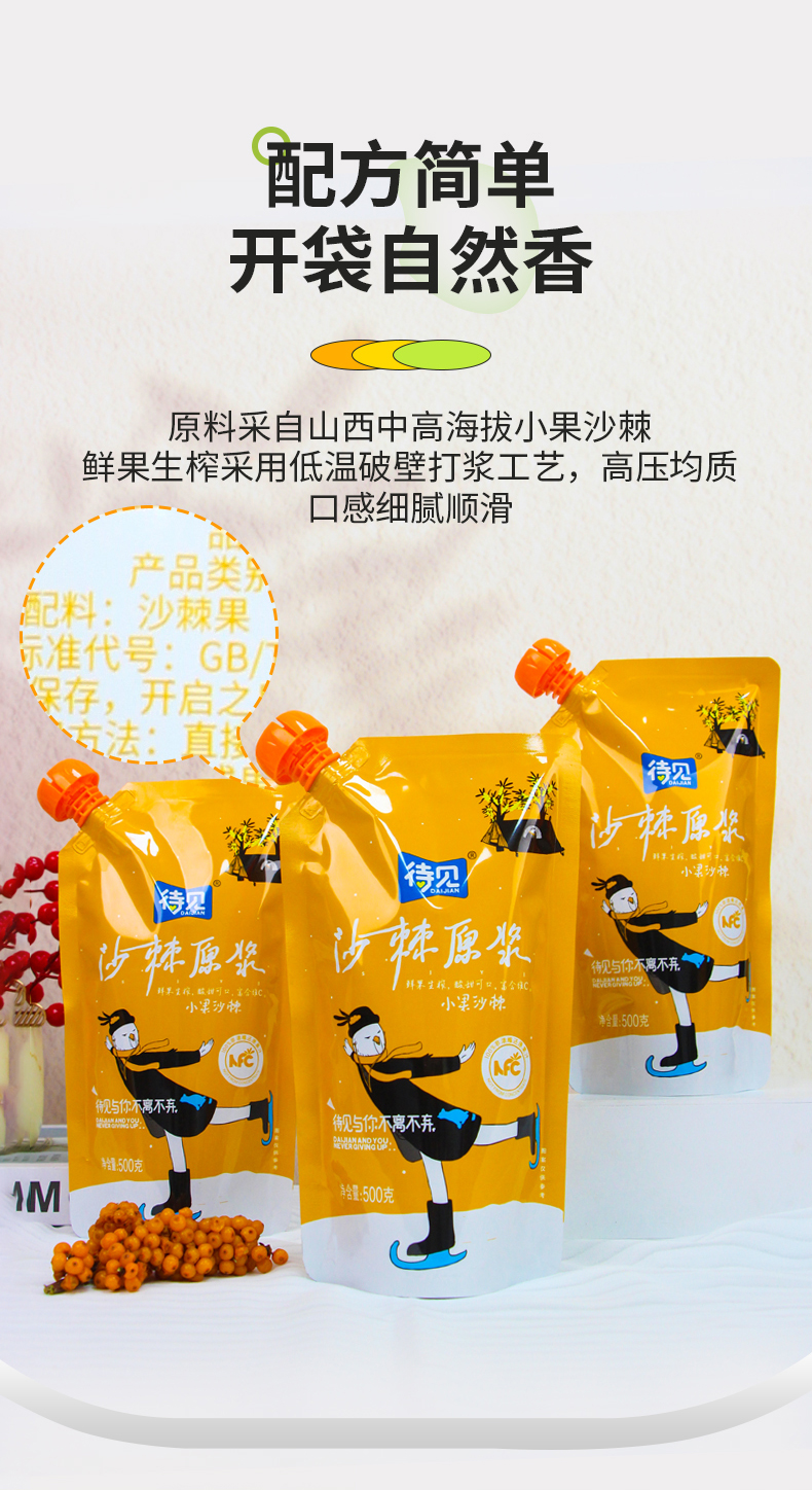 商品名称:待见NFC沙棘原浆500gx6袋*1箱 灰橙色