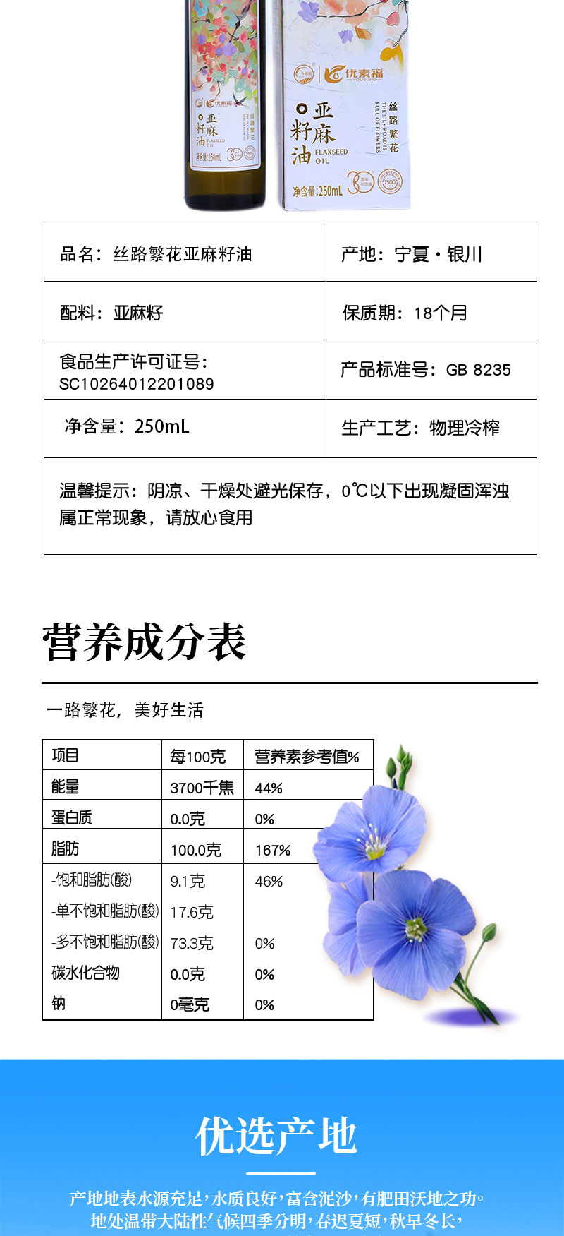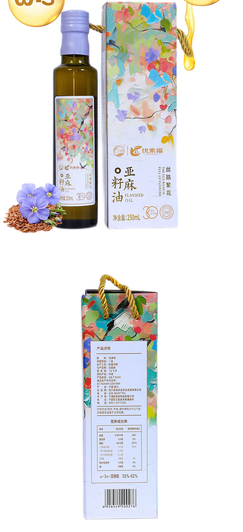 商品名称:优素福丝路繁花亚麻籽油单支装250ml(单位:盒) 粉色