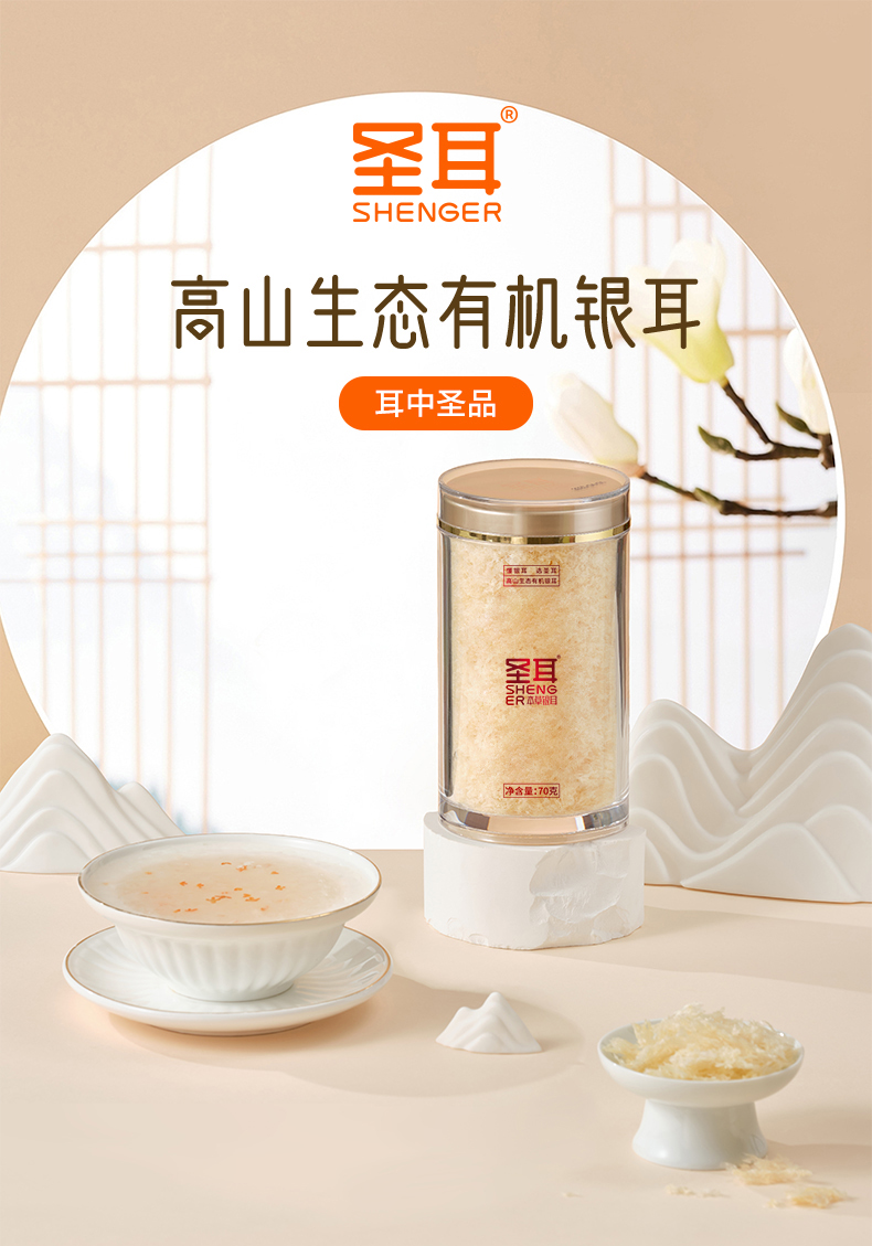 商品名称:圣耳 高山生态有机银耳70g罐装*3罐 象牙色