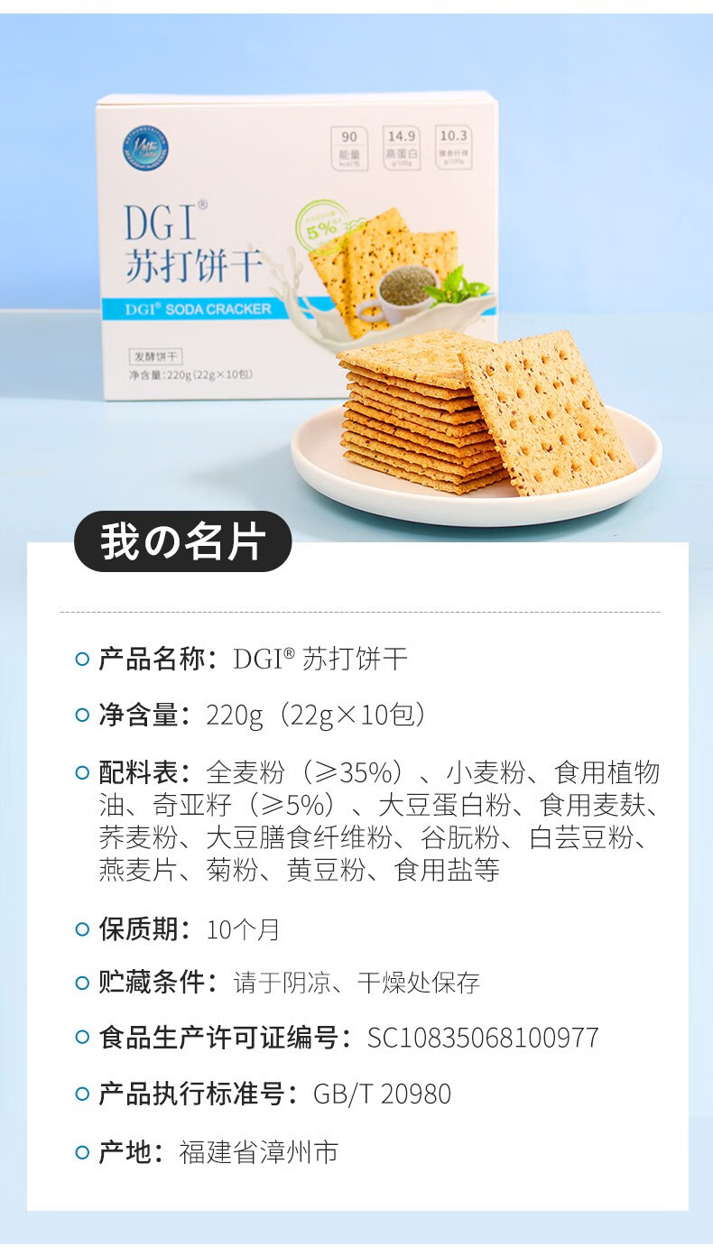 商品名称:DGI苏打饼干奇亚籽味 220g*1盒 白色