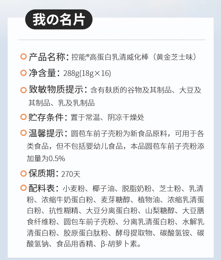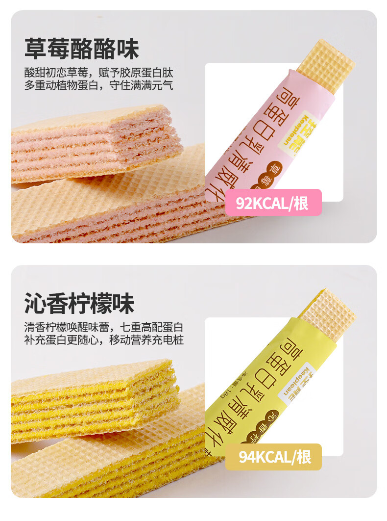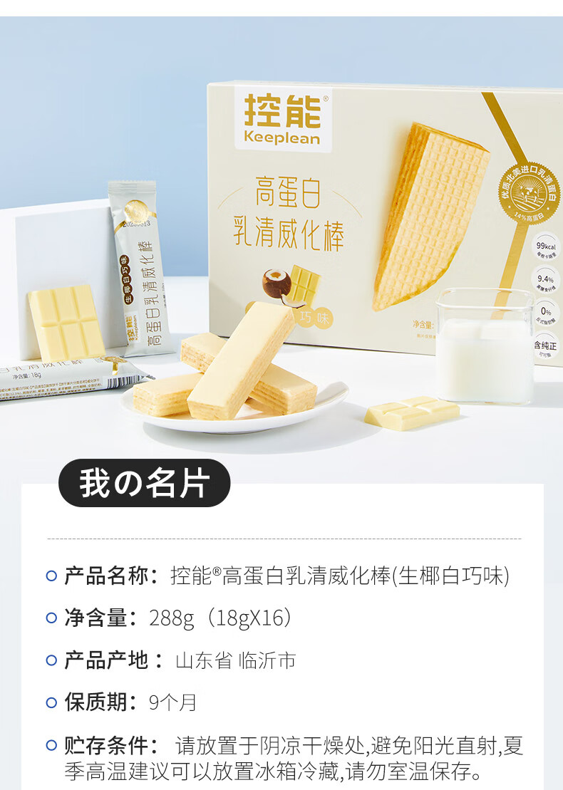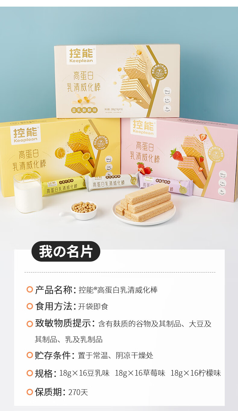 商品名称:控能高蛋白乳清威化棒沁香柠檬味 288g*1盒 黄色