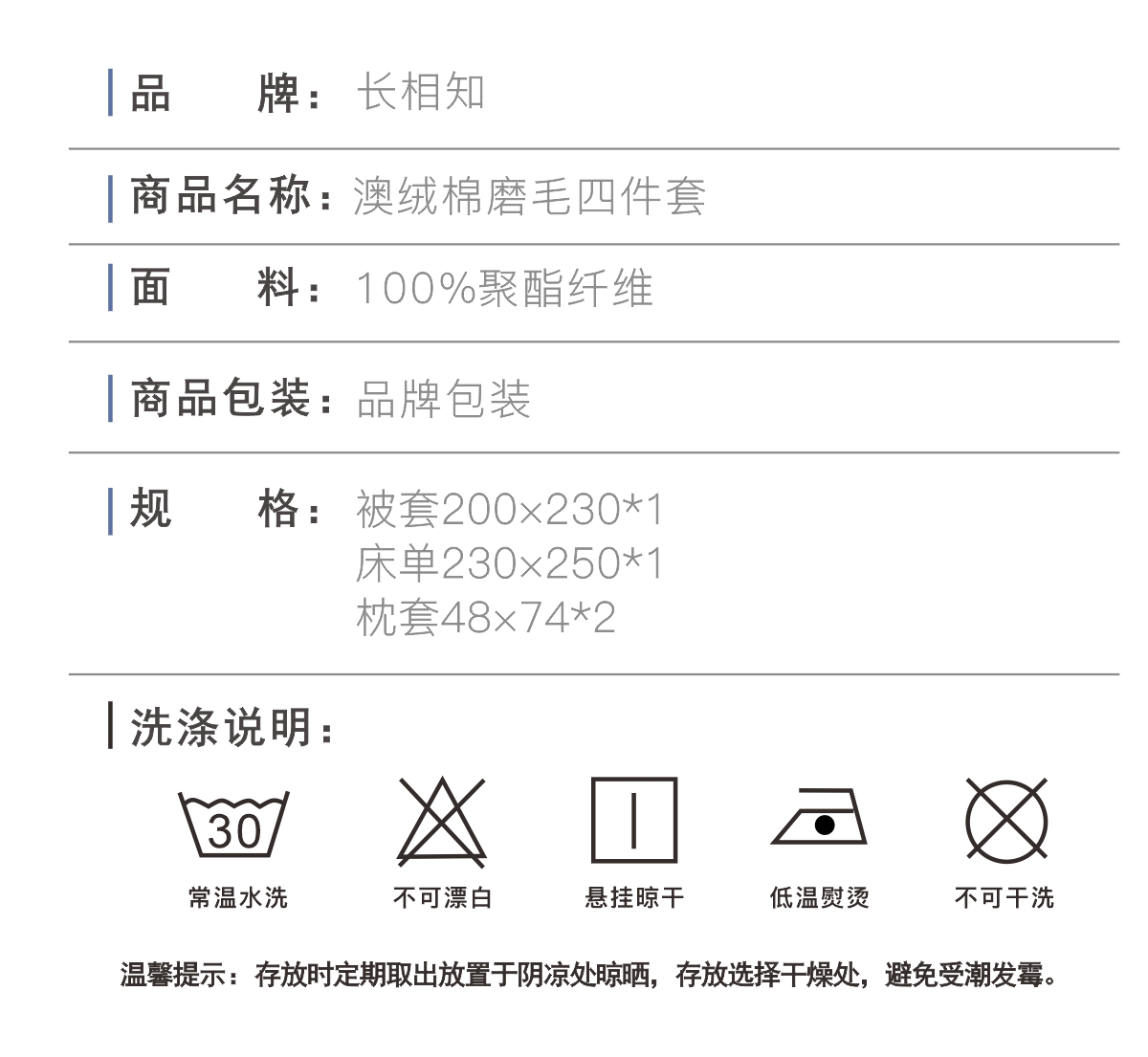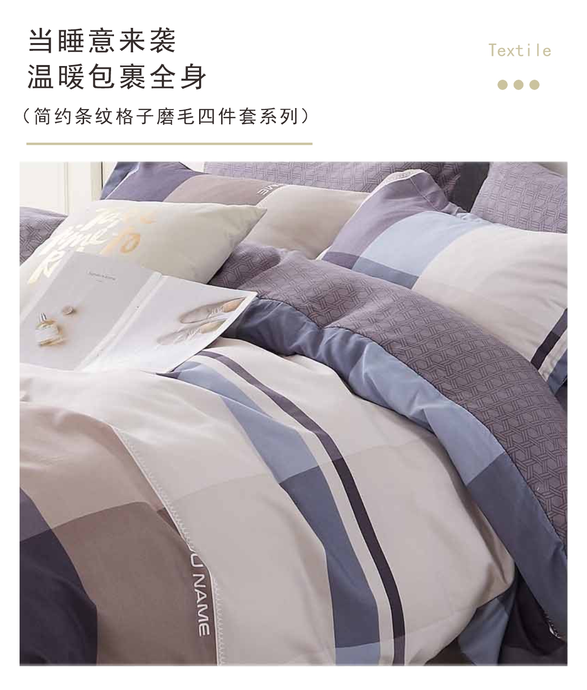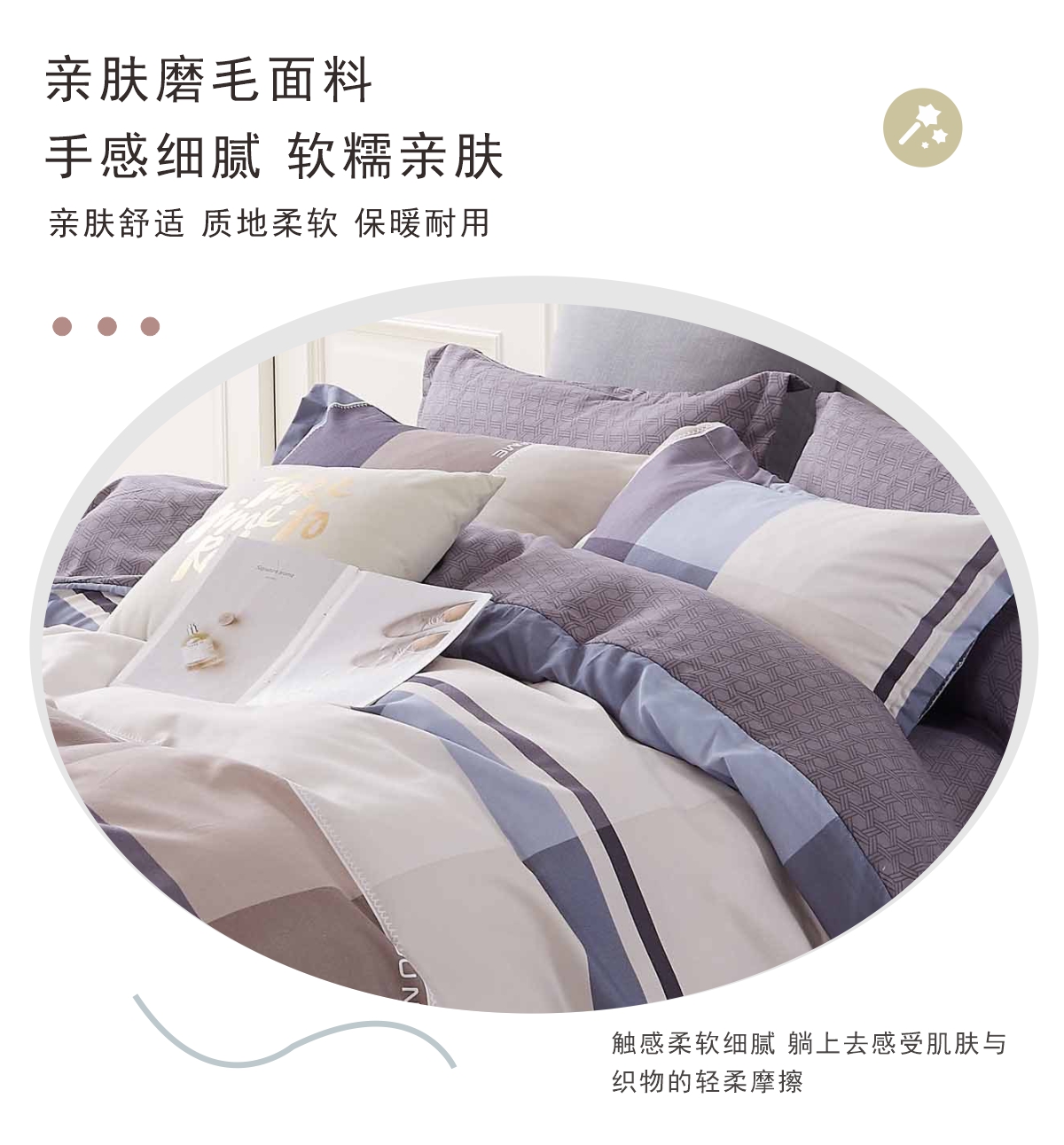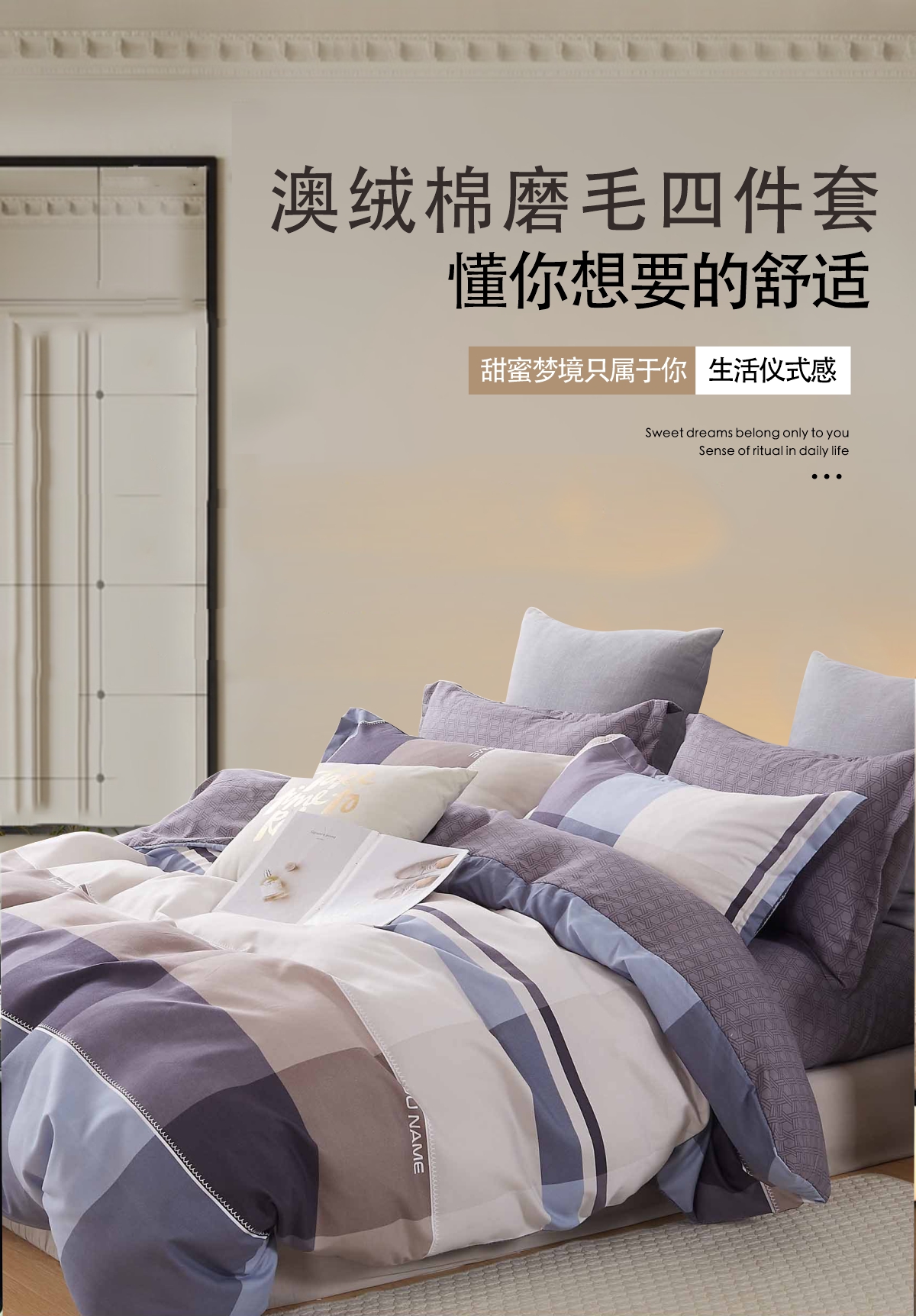 商品名称:长相知 澳绒棉磨毛四件套(单位:套) 娜维亚-蓝 200*230