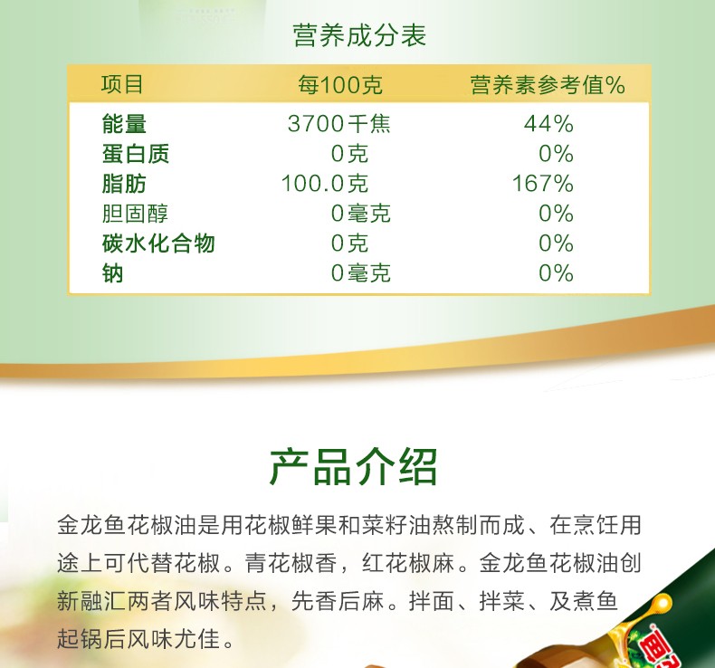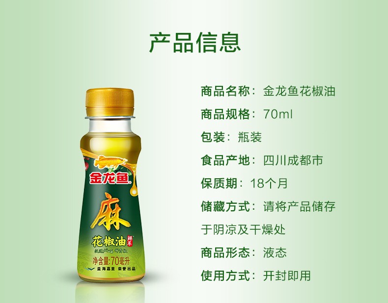 商品名称:金龙鱼花椒油70ml【单位:瓶】 绿色