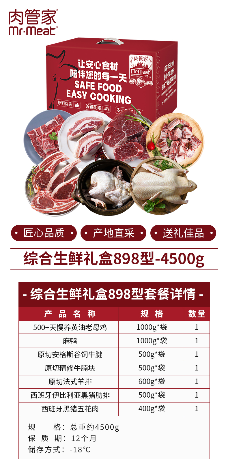 商品名称:肉管家综合生鲜礼盒898型4500g(盒) 红色