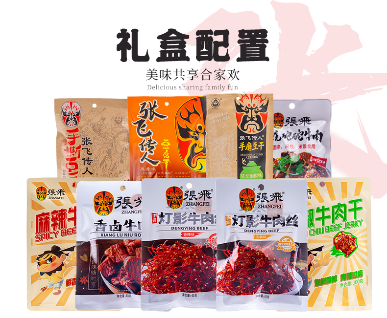 商品名称:张飞 四川特产牛肉有礼零食礼盒(单位:盒) 红色 1021g