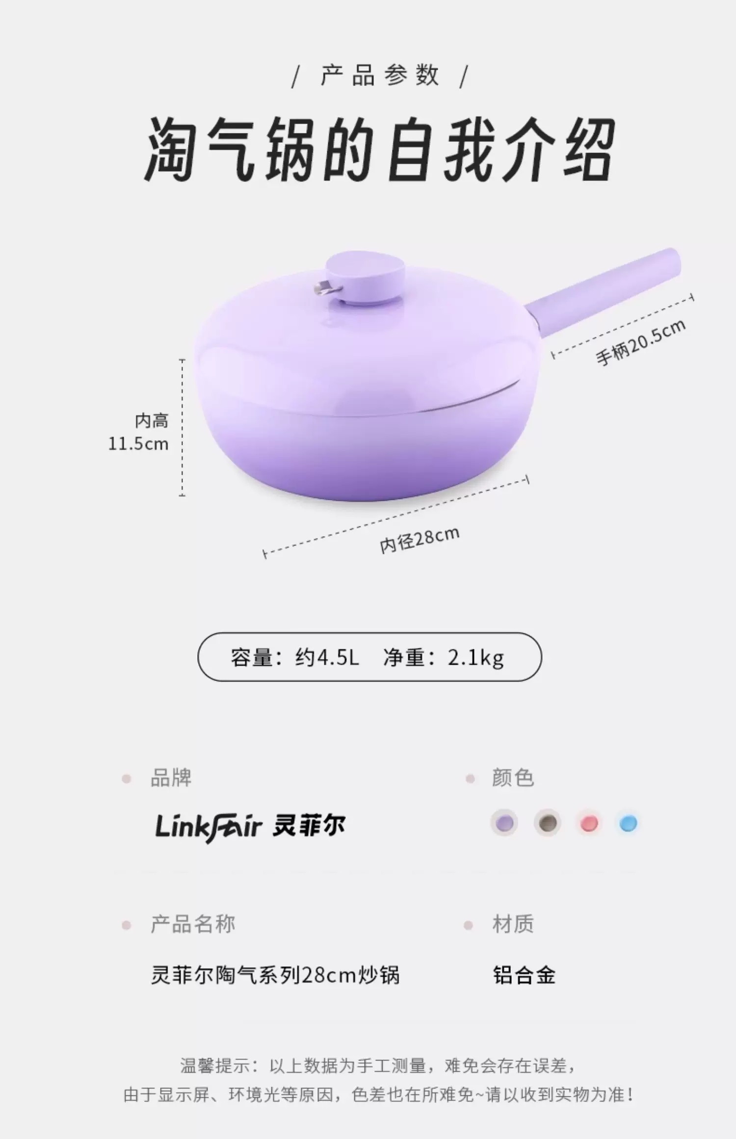 商品名称:灵菲尔FRPC-TQ28 淘气锅28cm炒锅不粘锅家用平底锅燃气电磁炉专用(单位:个) 淘气蓝