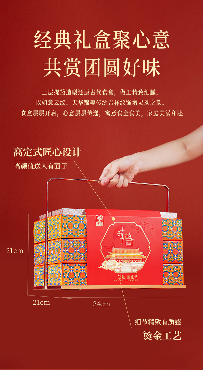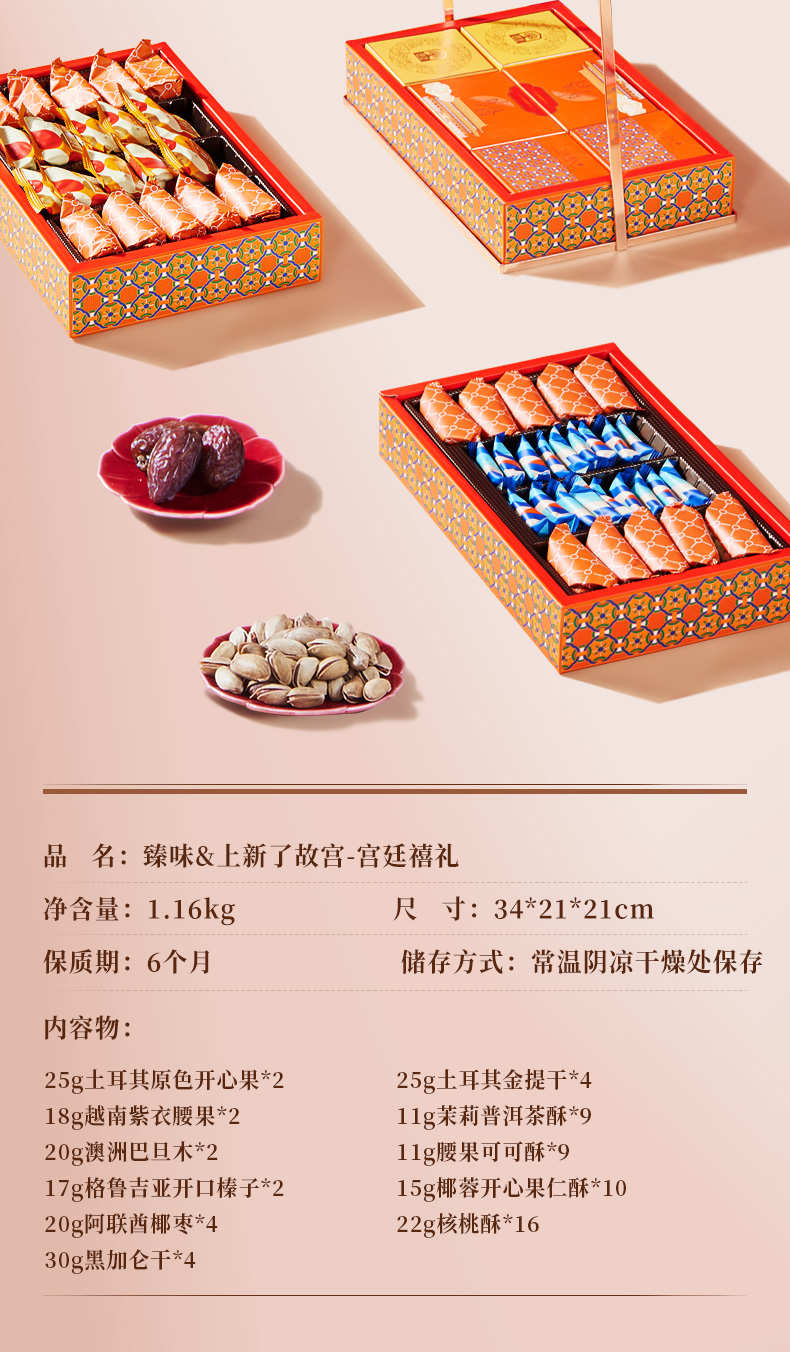 商品名称:臻味&上新了故宫宫廷禧礼糕点+坚果礼盒 1.16kg 单位:盒 红色