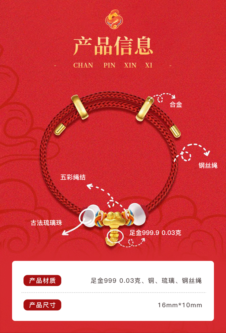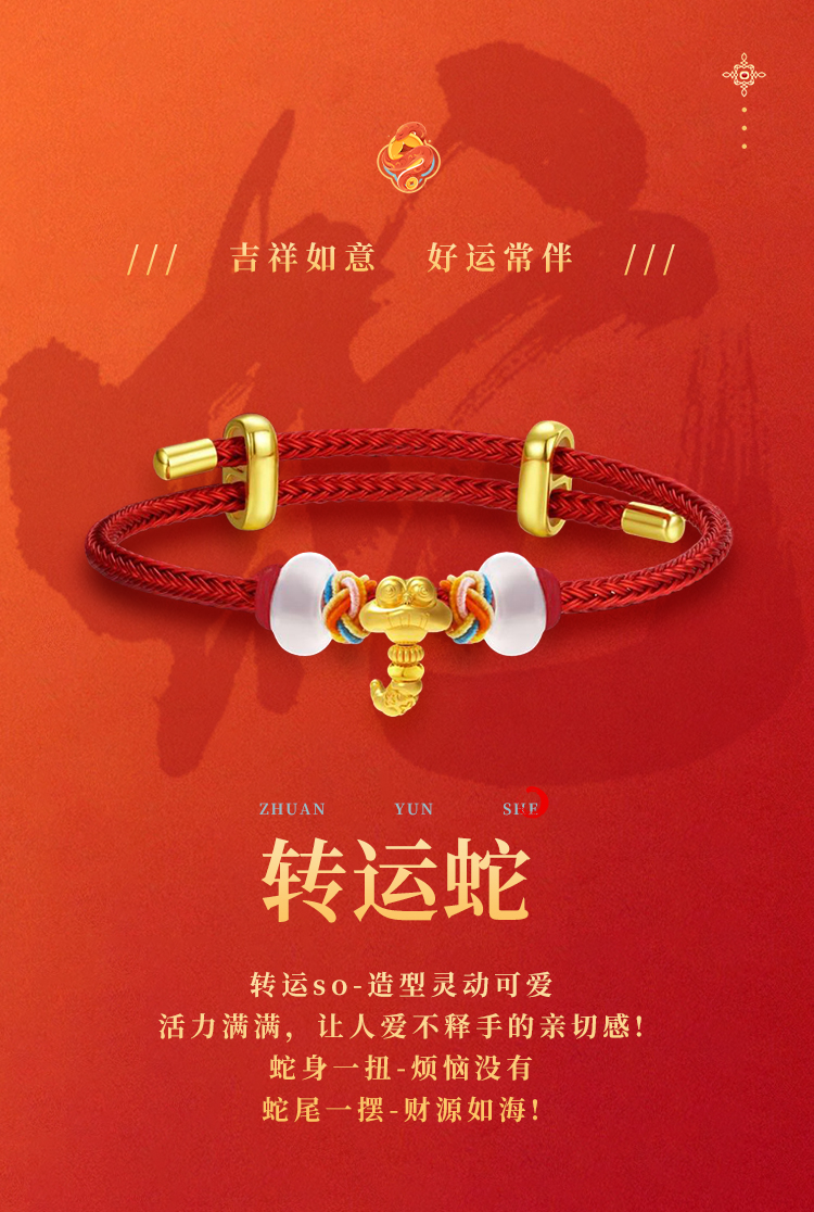 商品名称:佐禧佑福 黄金蛇转运手绳黄金0.03g/件 zxyfzys 金色