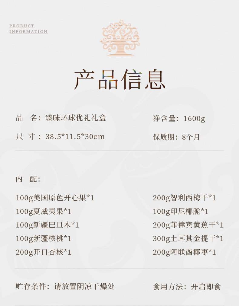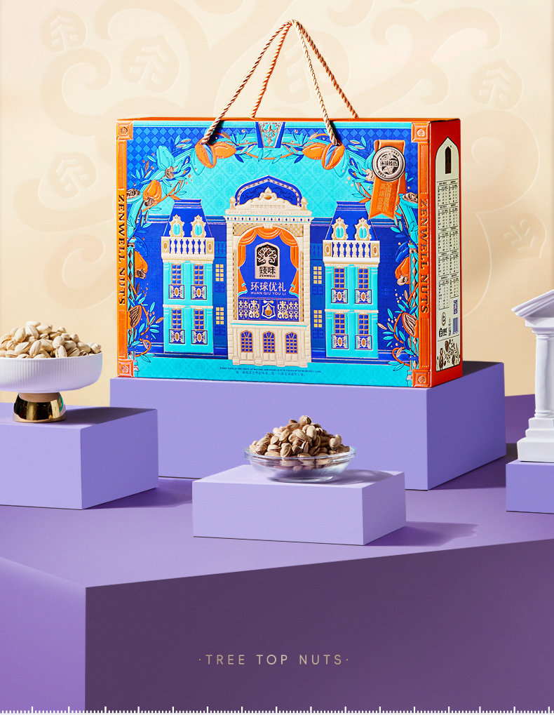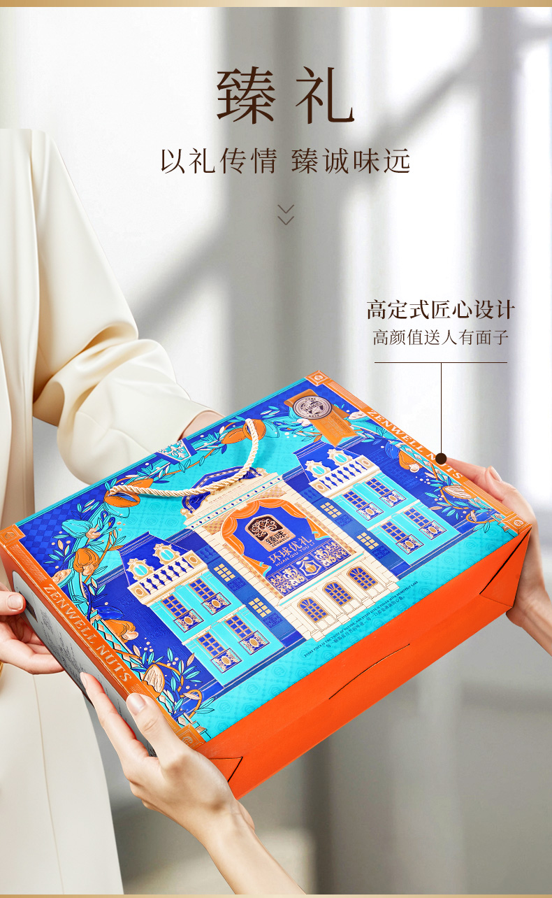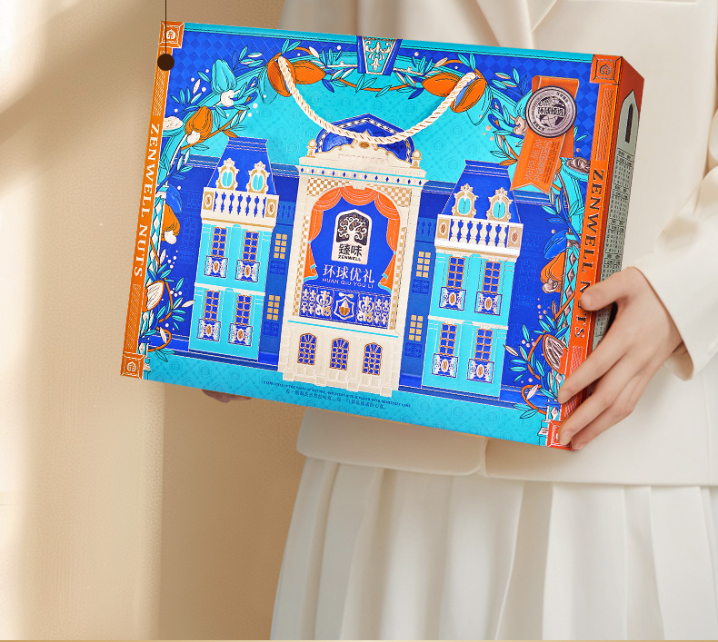商品名称:臻味环球优礼坚果礼盒 1.6kg 单位:盒 蓝色