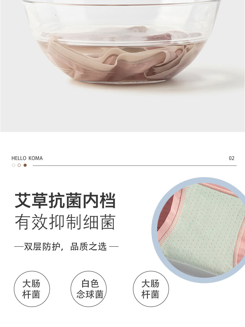 商品名称:HELLO KOMA女士艾草内裤60支兰精莫代尔三角裤纯色透气抗菌档一片式中腰内裤20359(单位:盒) 混色 L