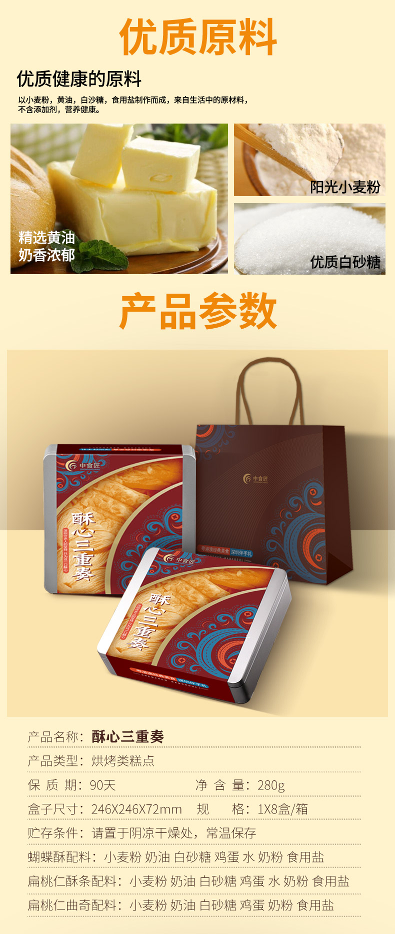 商品名称:中食匠心 酥心三重奏280g单位:盒 棕色