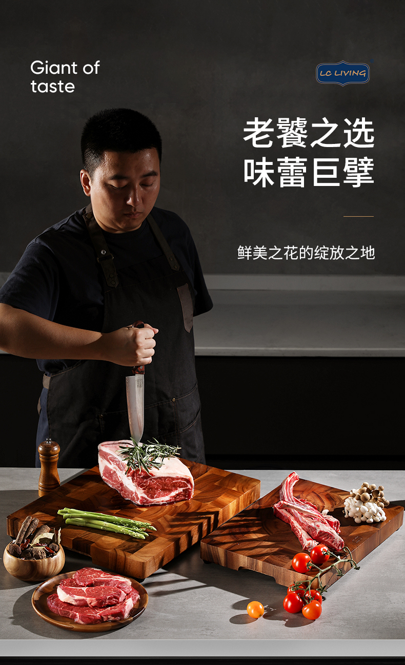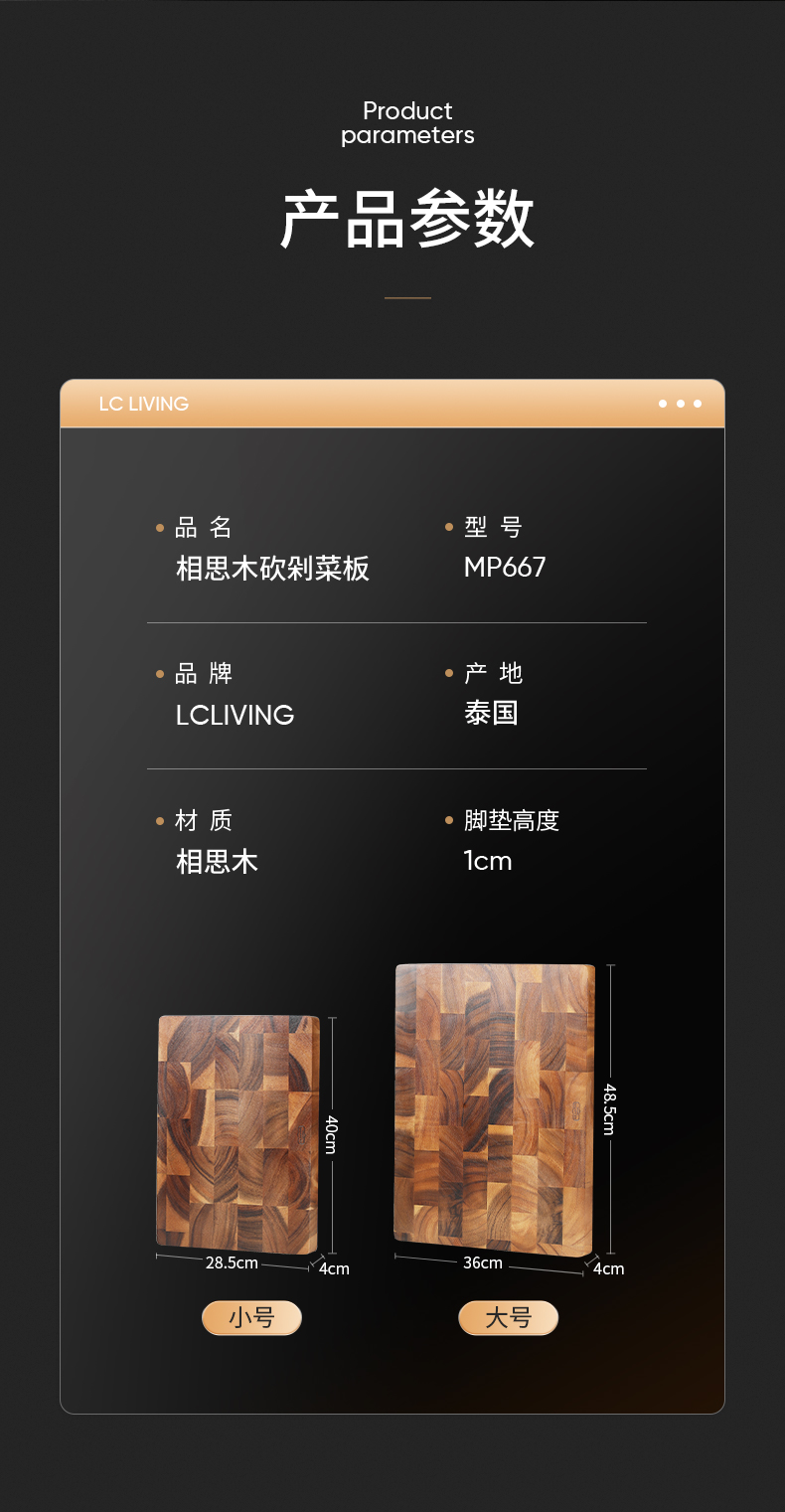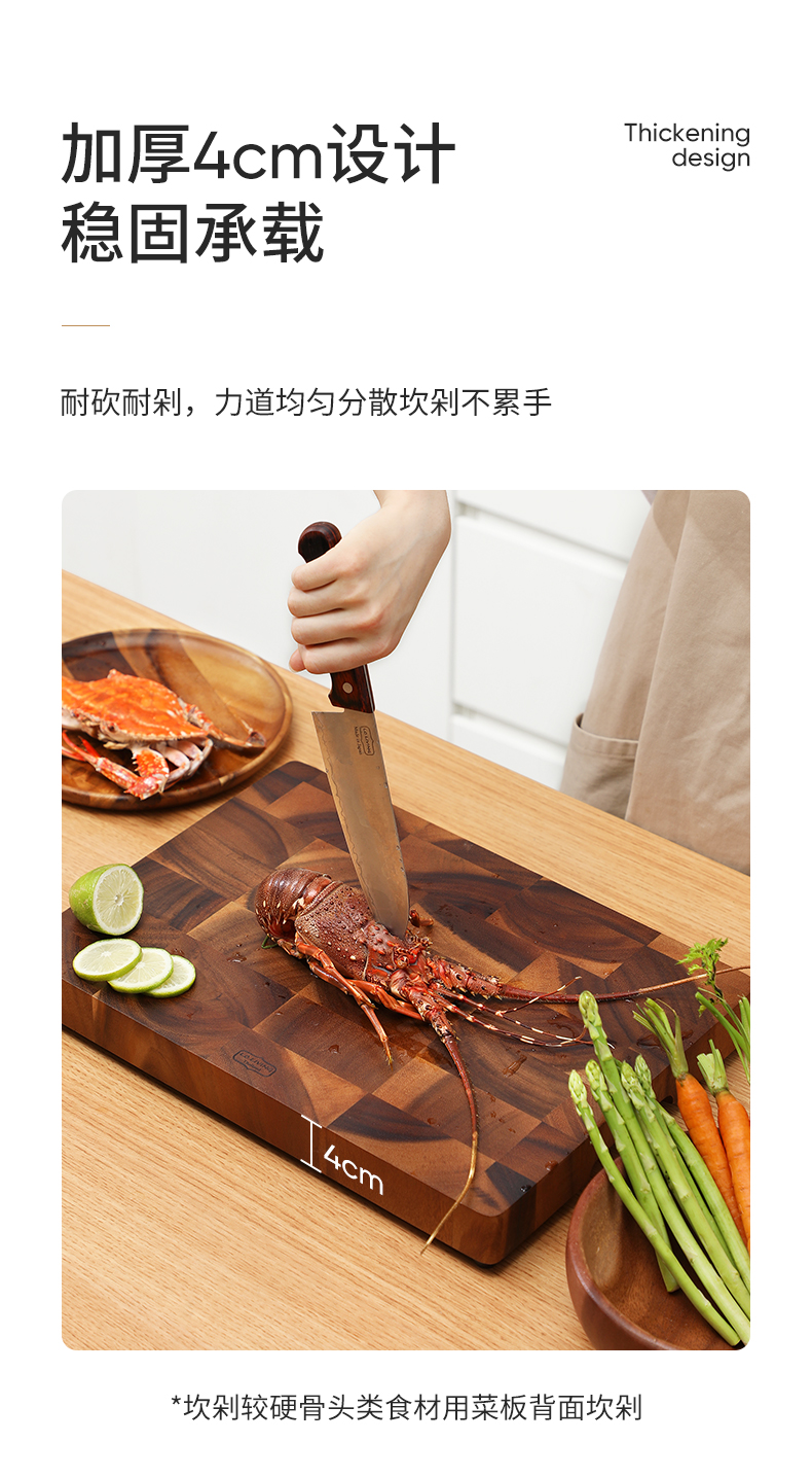 商品名称:LC LIVING MP667L 恩格瑞长方形加厚菜板大号(50年树龄/脚垫)(单位:个) 木色