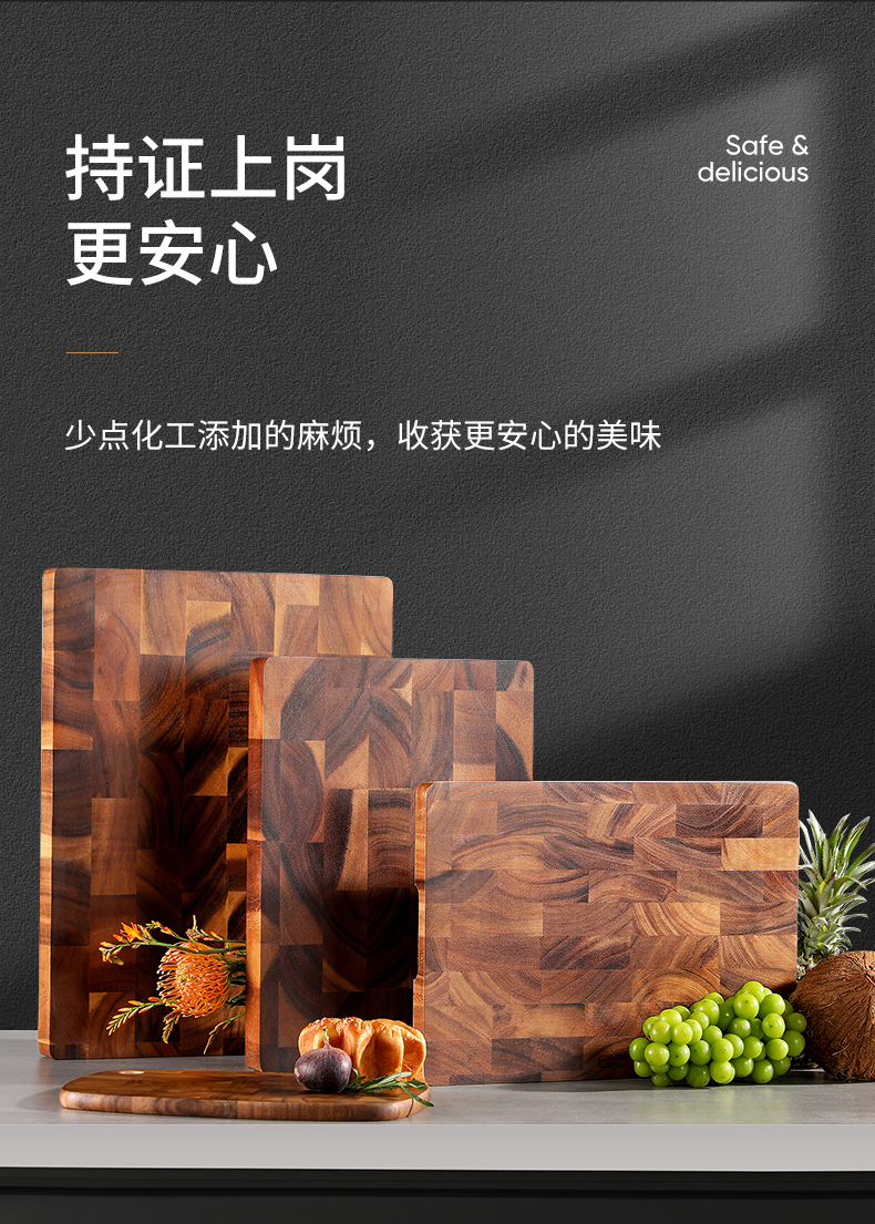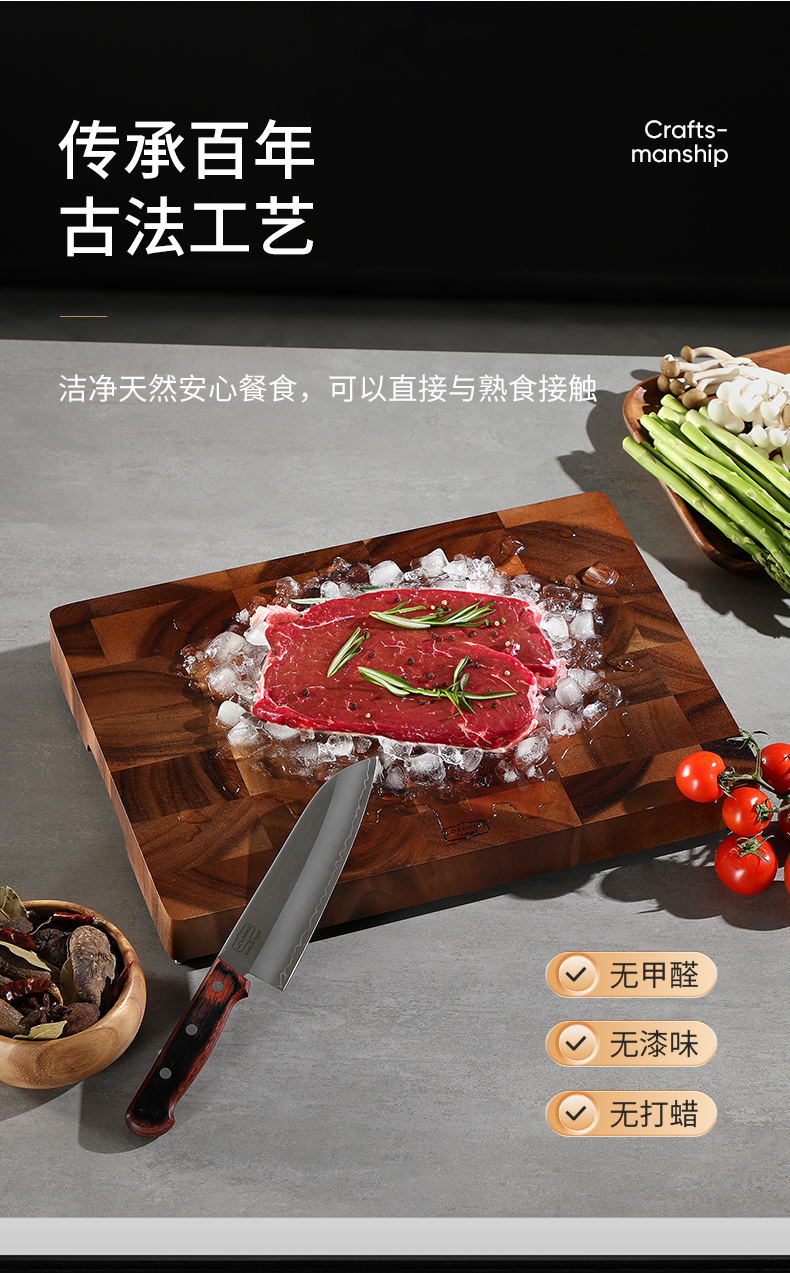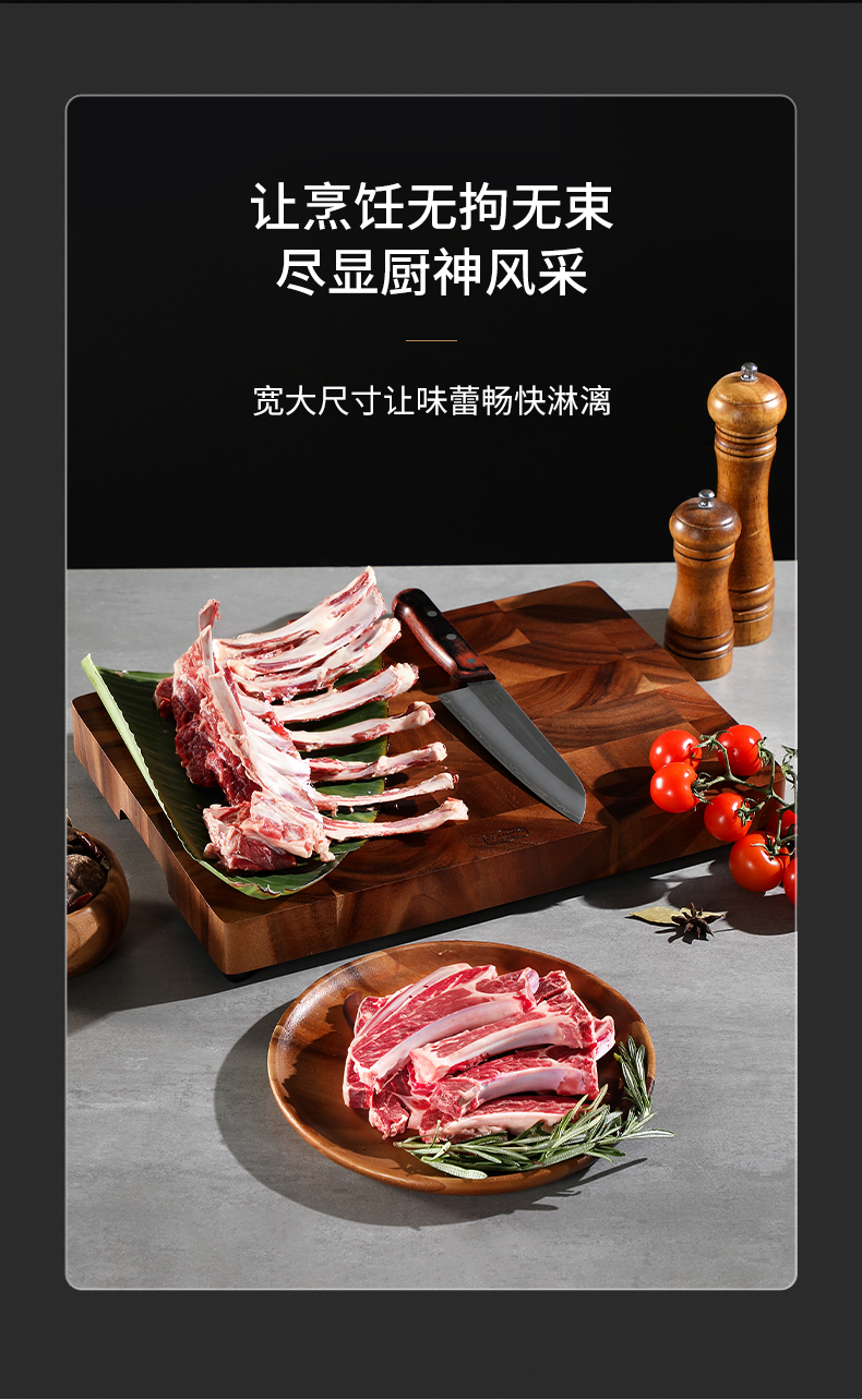商品名称:LC LIVING MP667L 恩格瑞长方形加厚菜板大号(50年树龄/脚垫)(单位:个) 木色