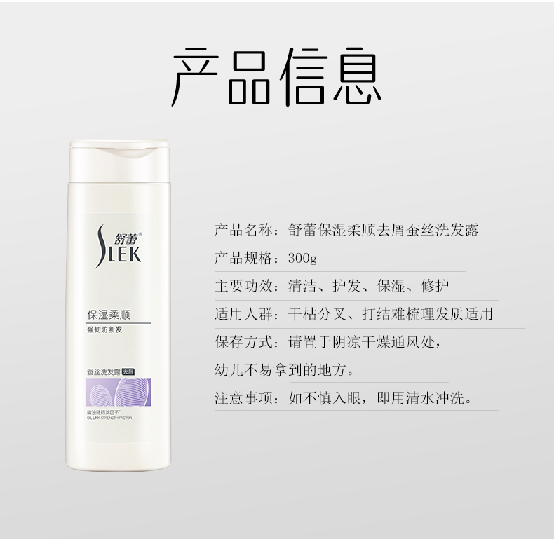 商品名称:舒蕾 蚕丝顺滑去屑洗发露 300g 保湿护发丝柔顺滑 混色(单位:瓶)
