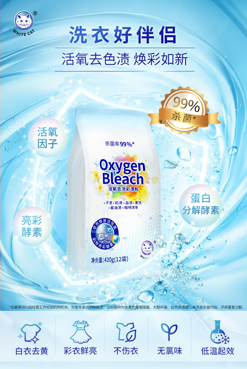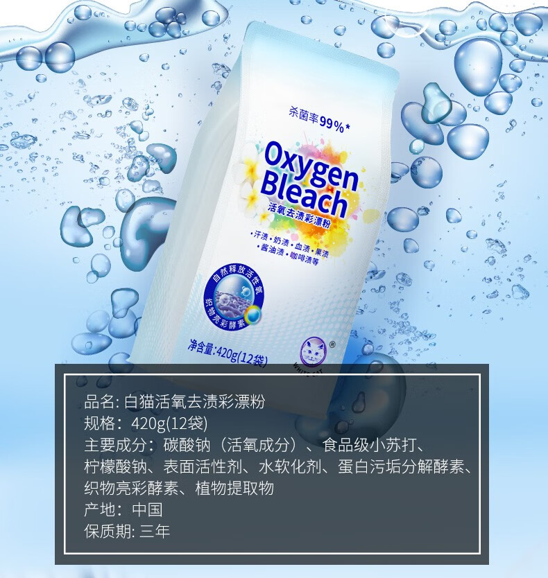 商品名称:白猫活氧去渍彩漂粉35g*12袋(单位:袋) 淡蓝色