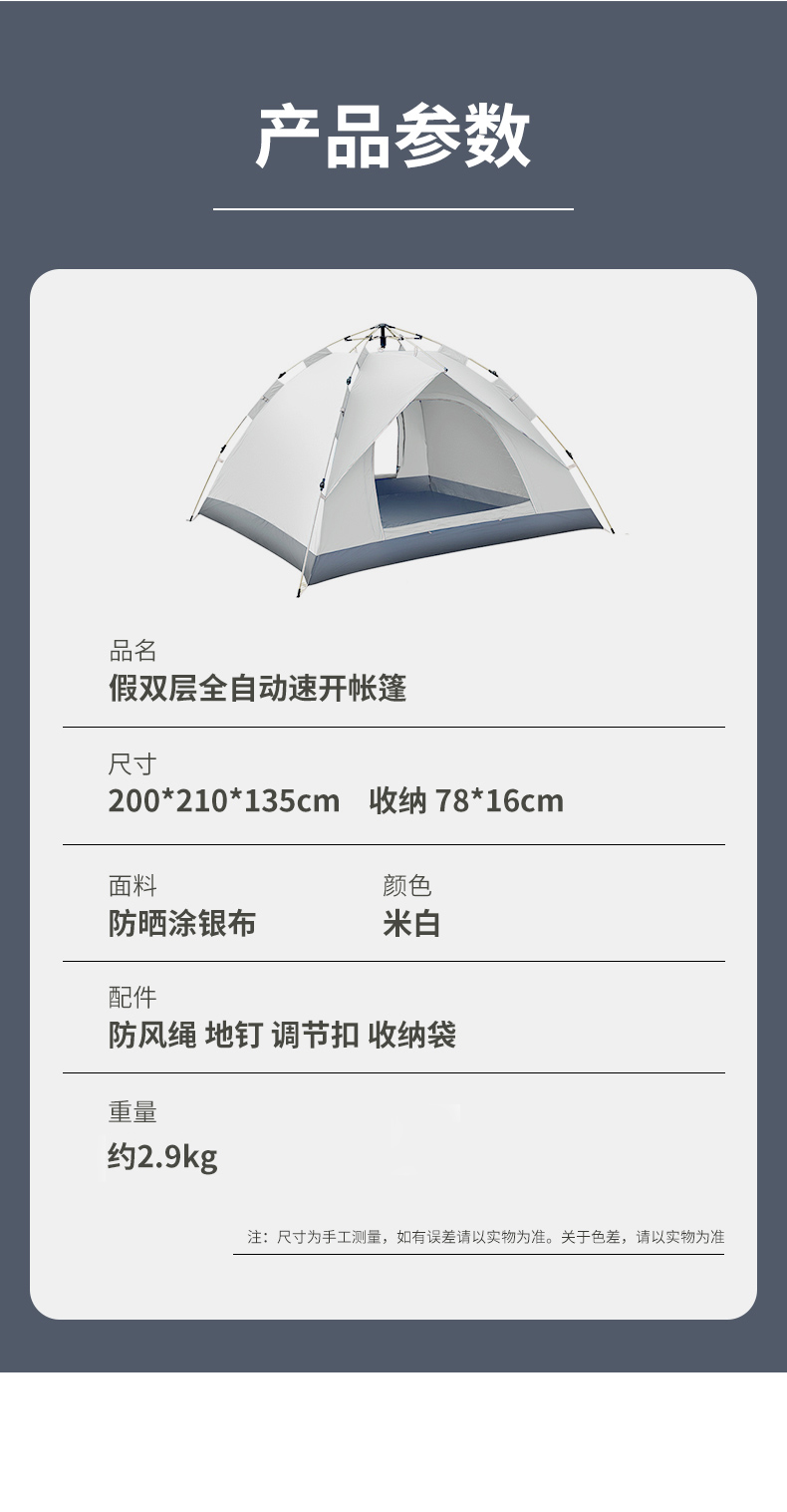 商品名称:西屋(Westinghouse) MN02A 200*210*135cm 帐篷 米白色(单位:顶)