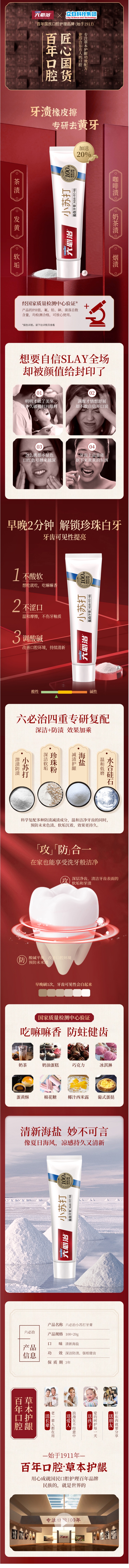 商品名称:六必治小苏打盐白牙膏(清新海盐)120g*3支(单位:支) 红色