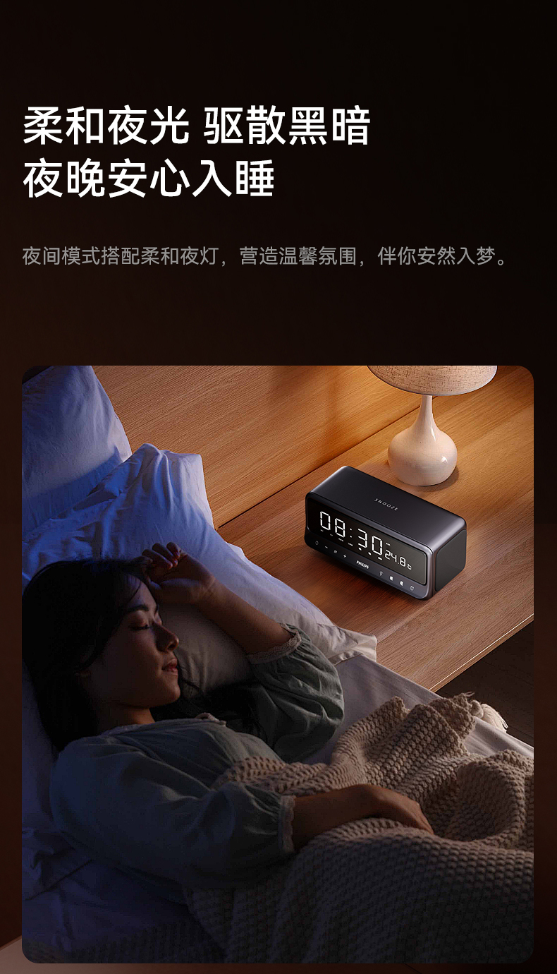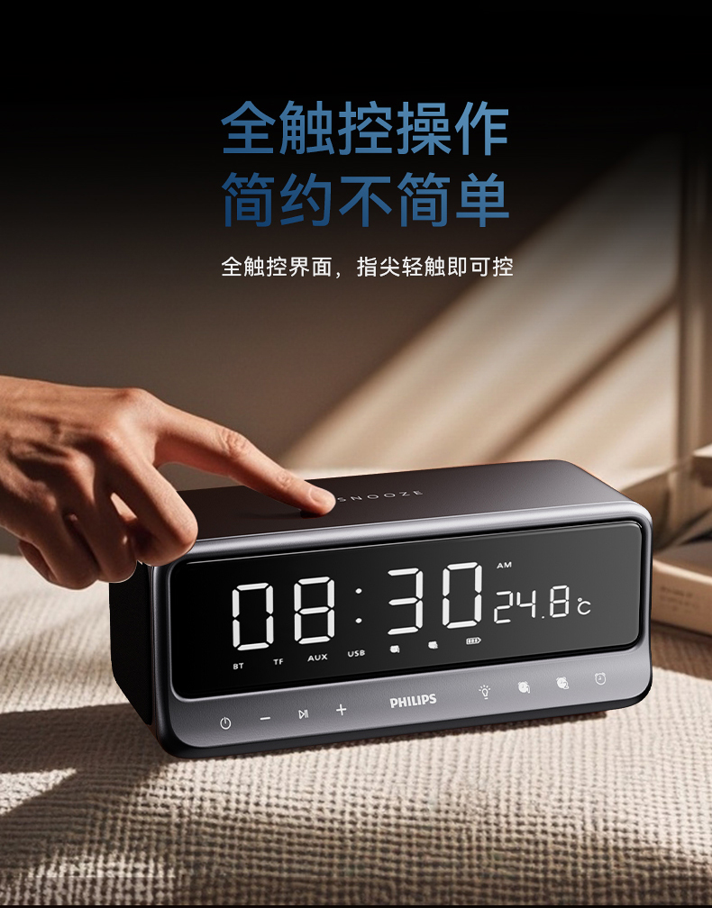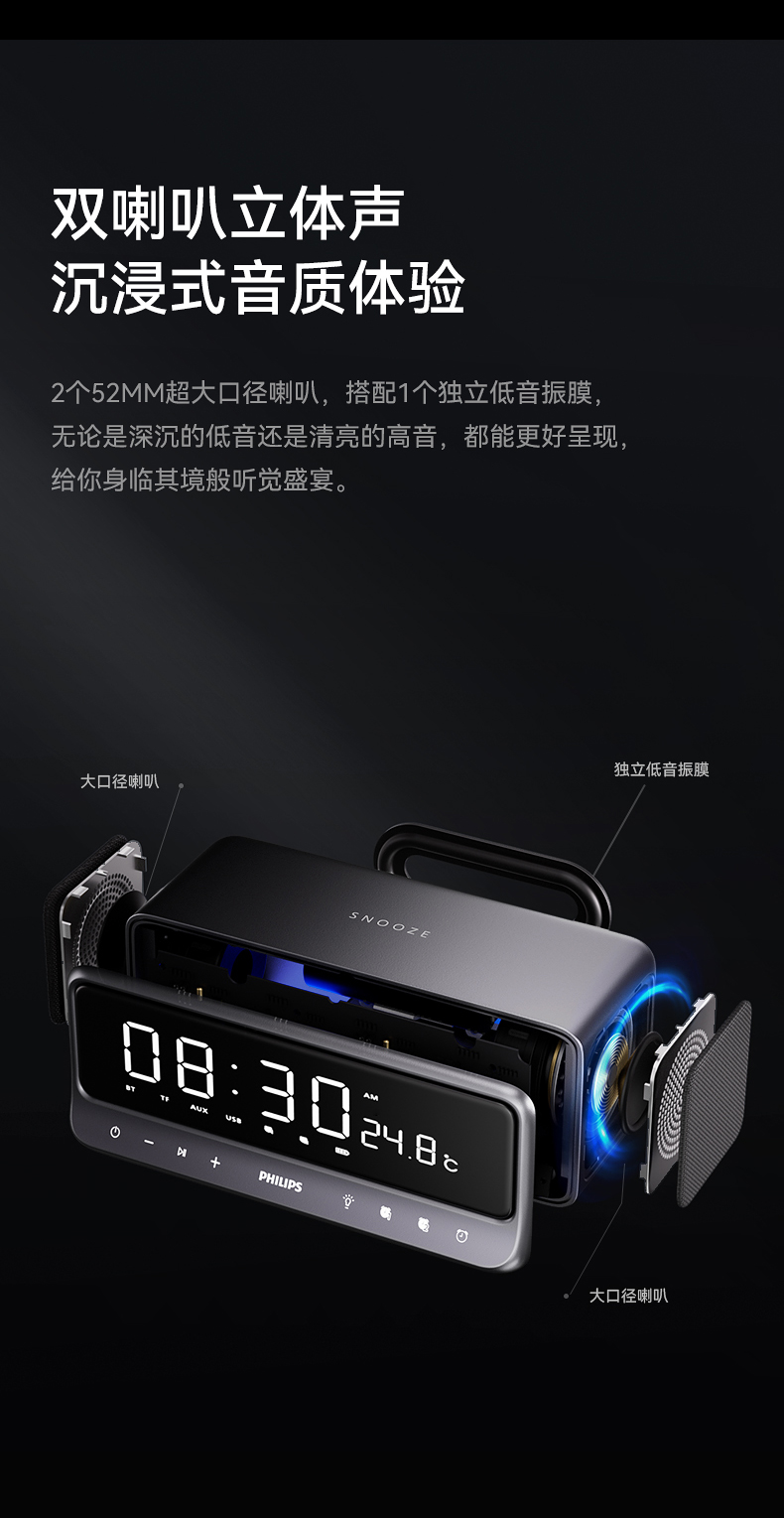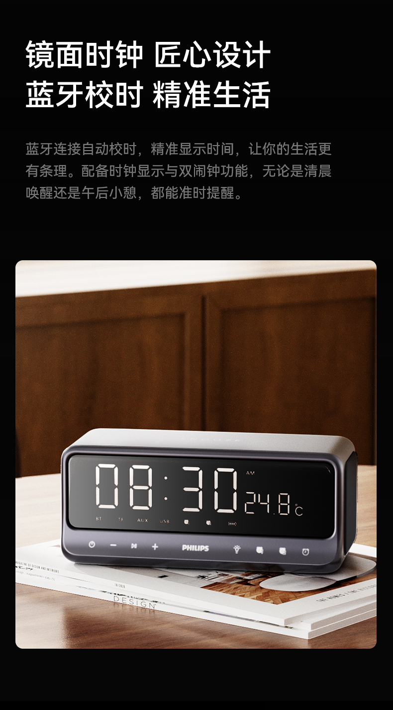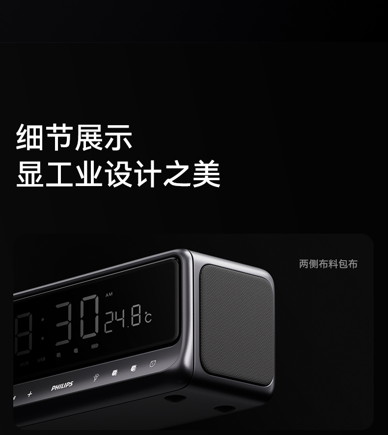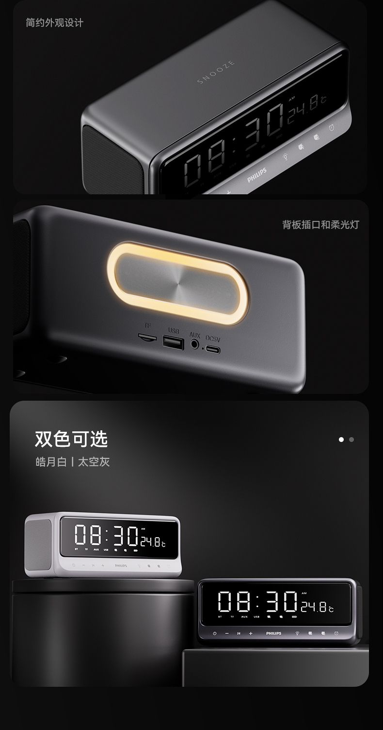 商品名称:飞利浦(PHILIPS) TAS3609 蓝牙音箱 音乐与时钟的美妙邂逅 深空灰(单位:个)