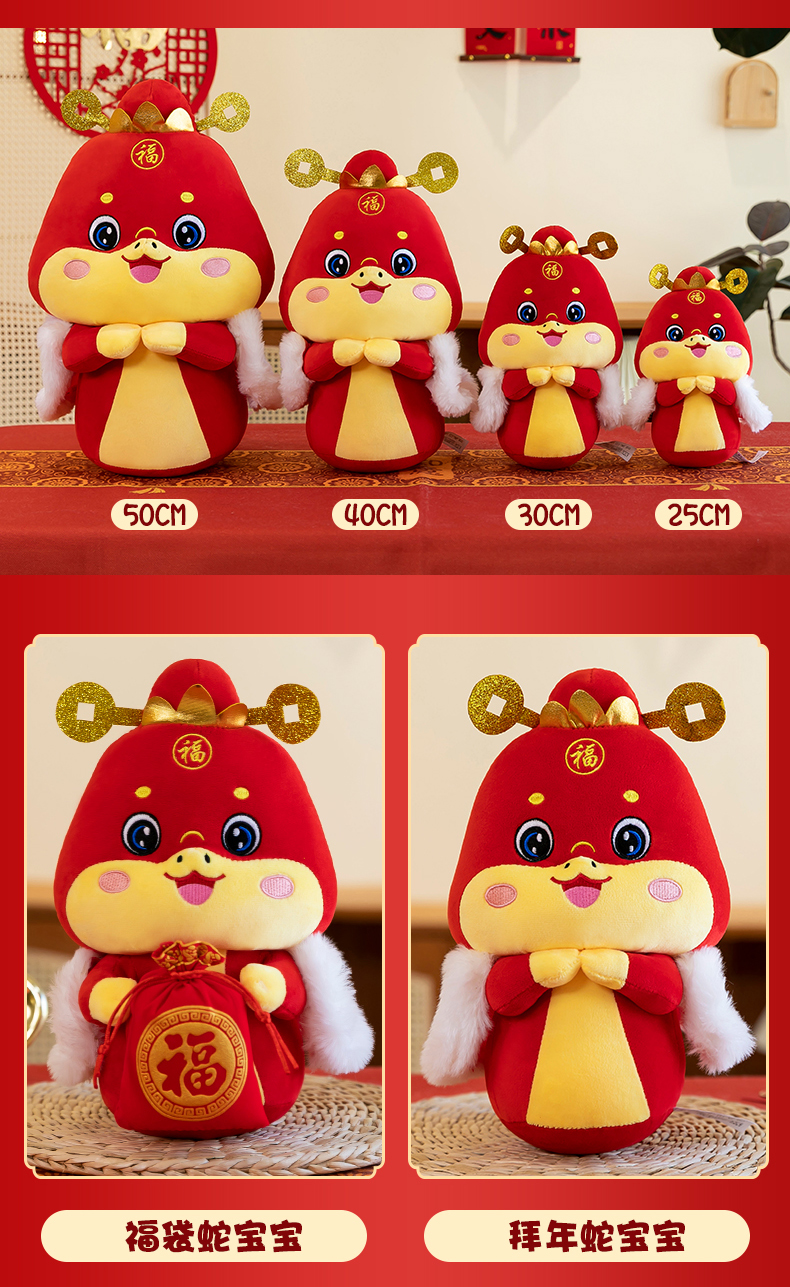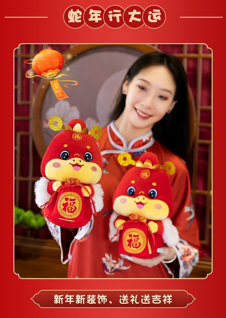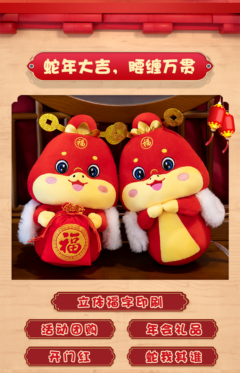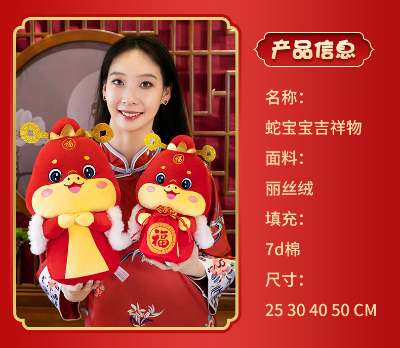 商品名称:百莉公主蛇年吉祥物-披风福袋蛇 25CM 单位:个 红色