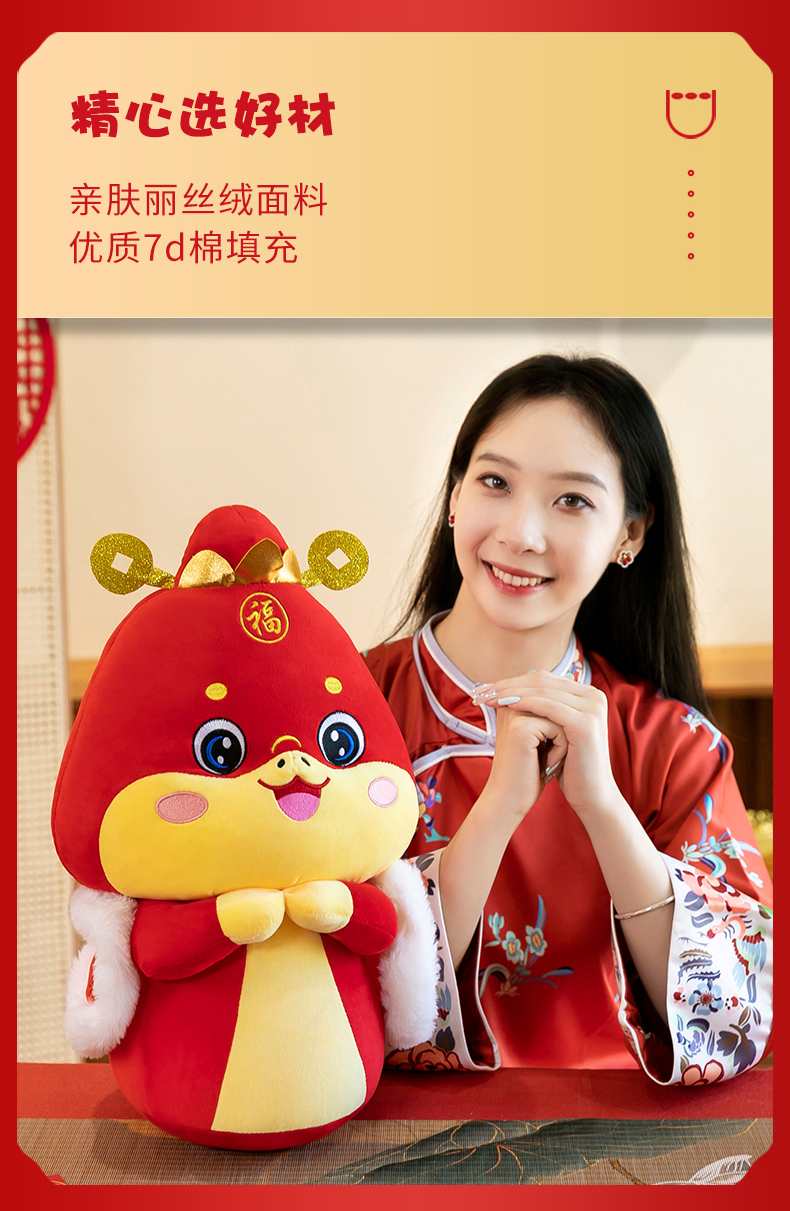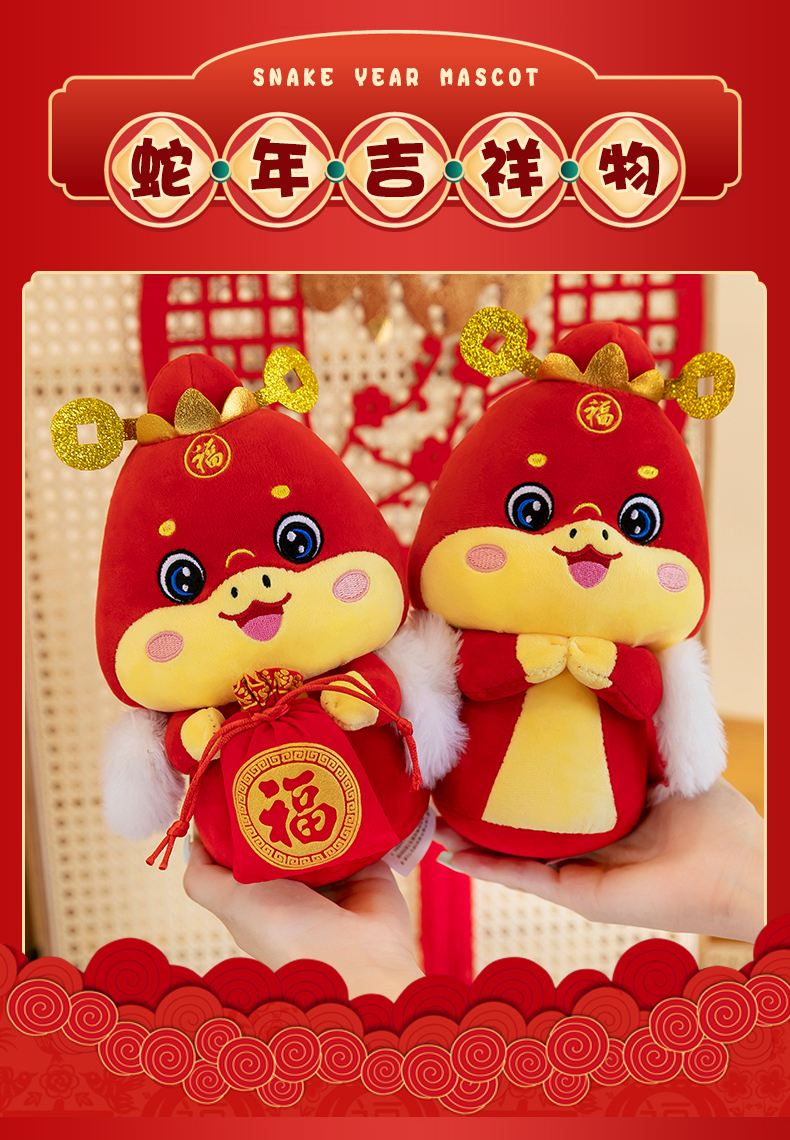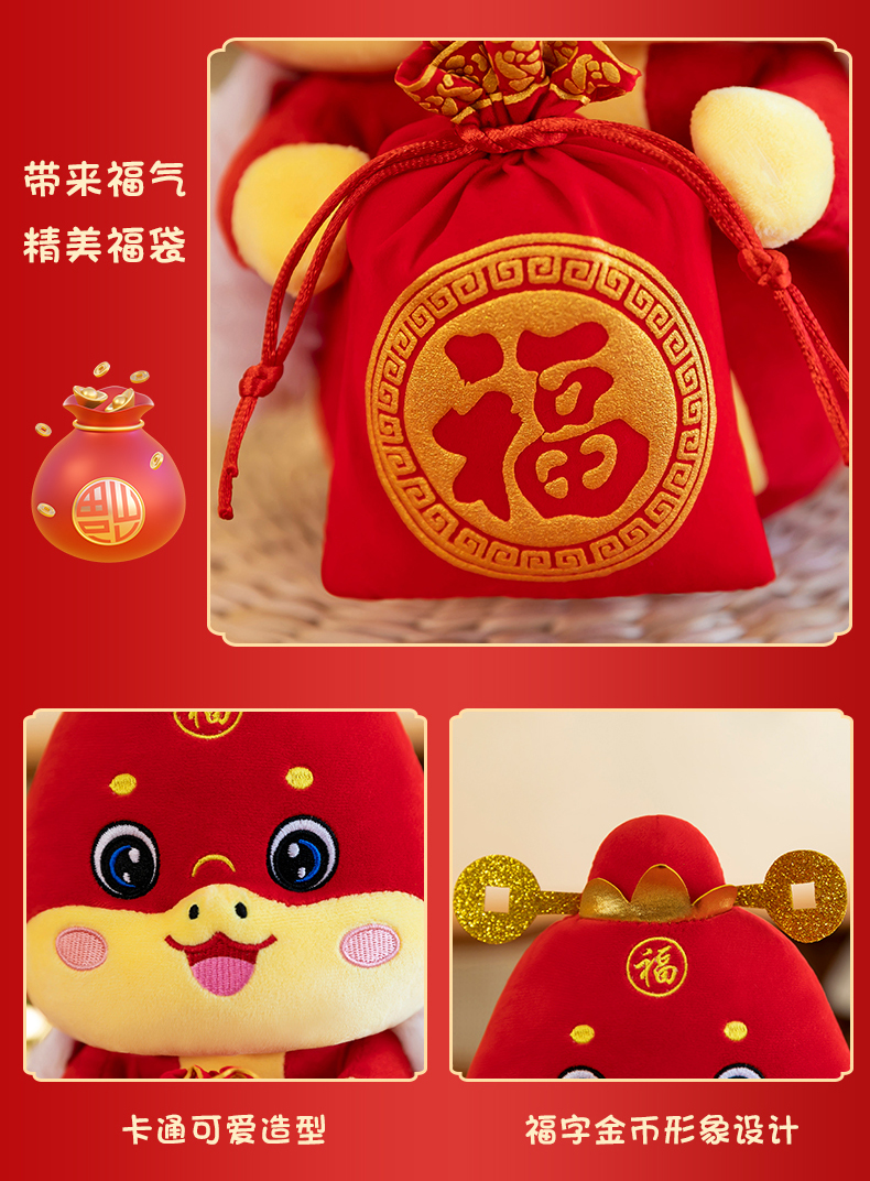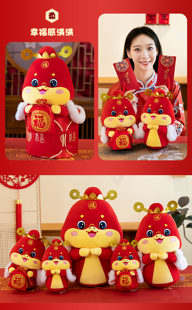 商品名称:百莉公主蛇年吉祥物-披风福袋蛇 25CM 单位:个 红色