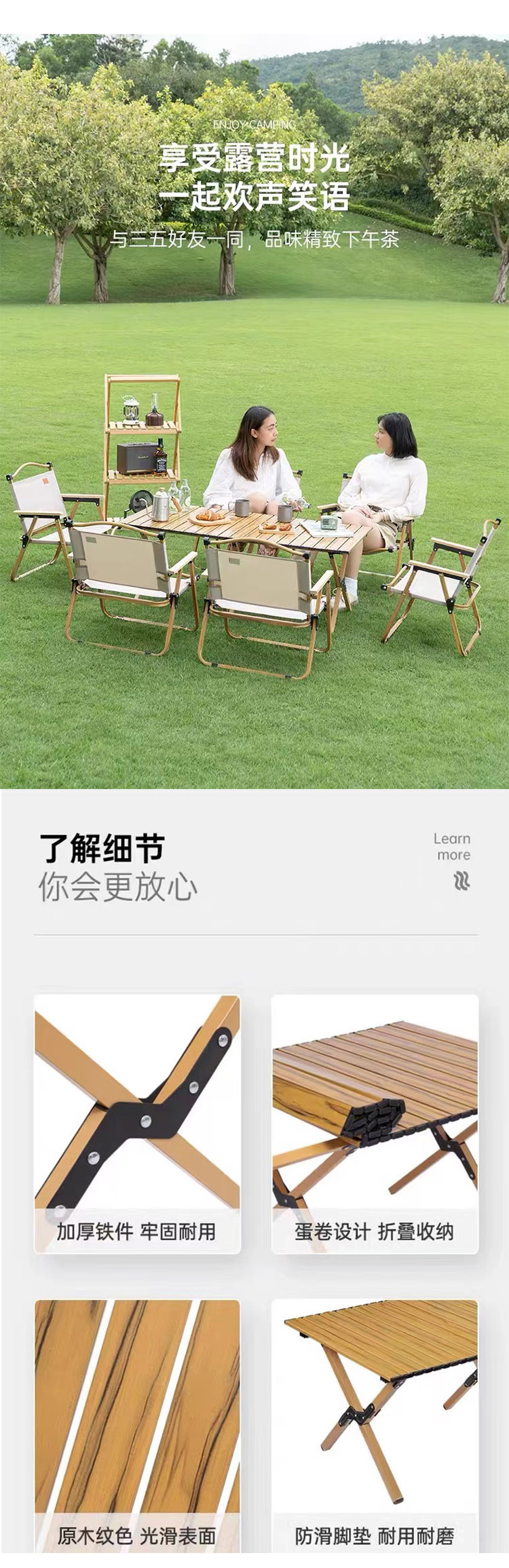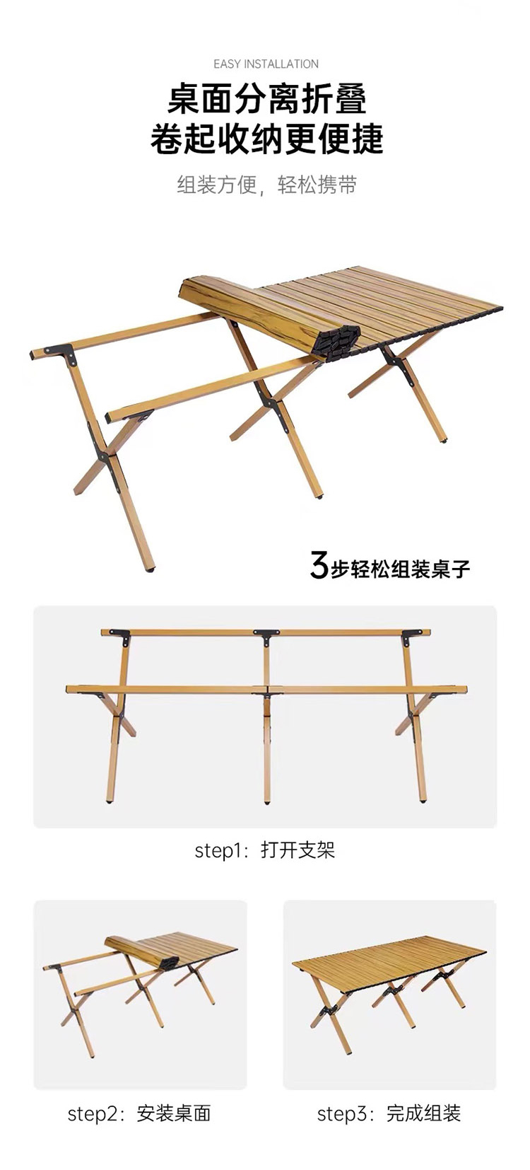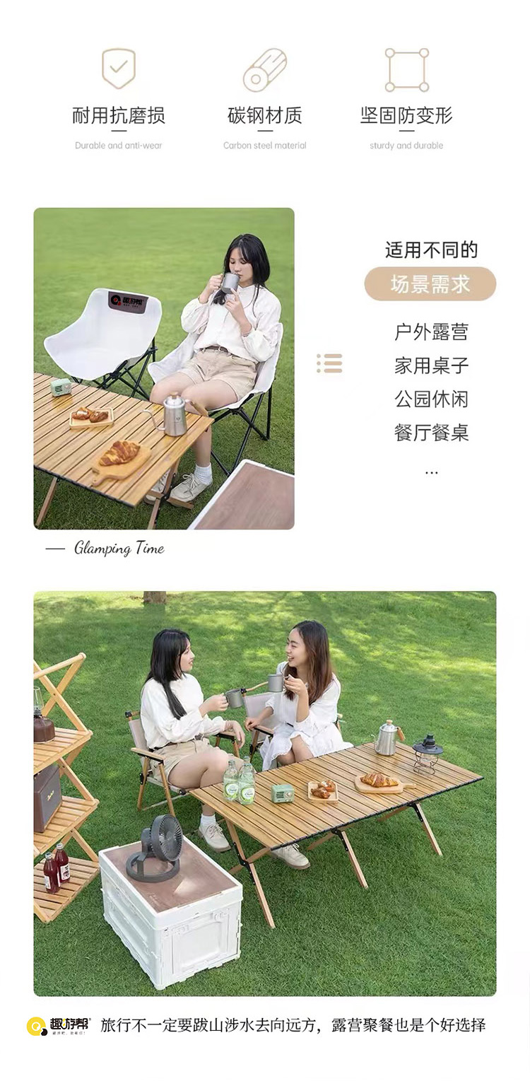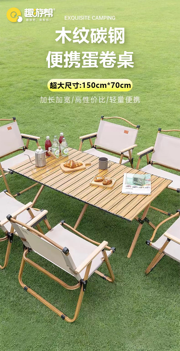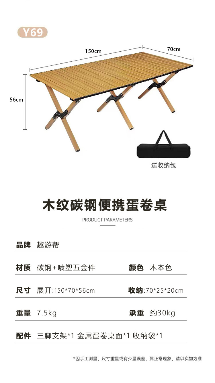 商品名称:趣游帮 150方管脚架木纹碳钢便携蛋卷桌Y69/张 无色