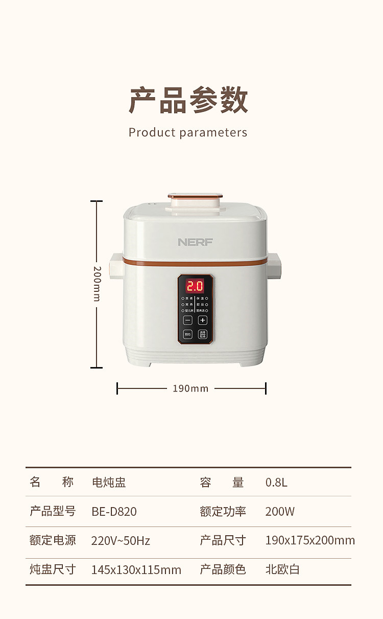 商品名称:NERF BE-D820 200w 电炖盅 白色(单位:个)