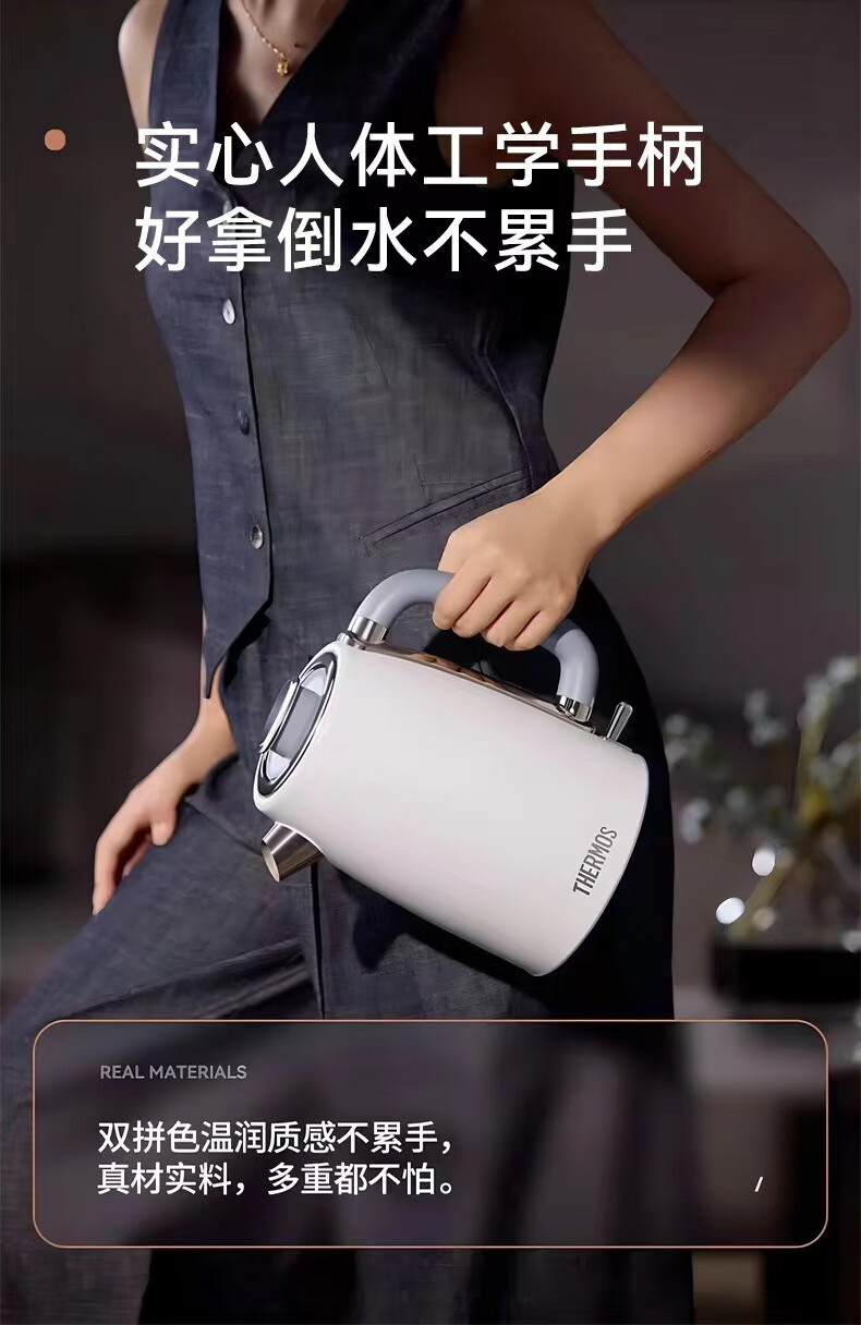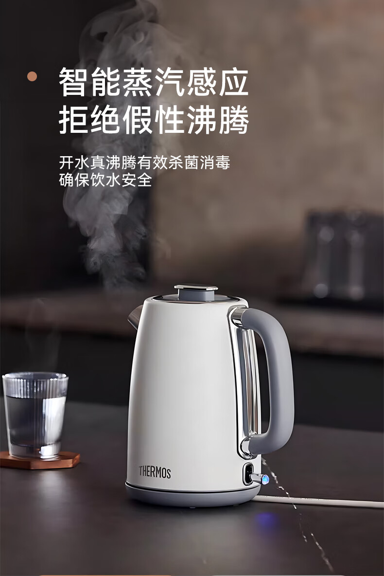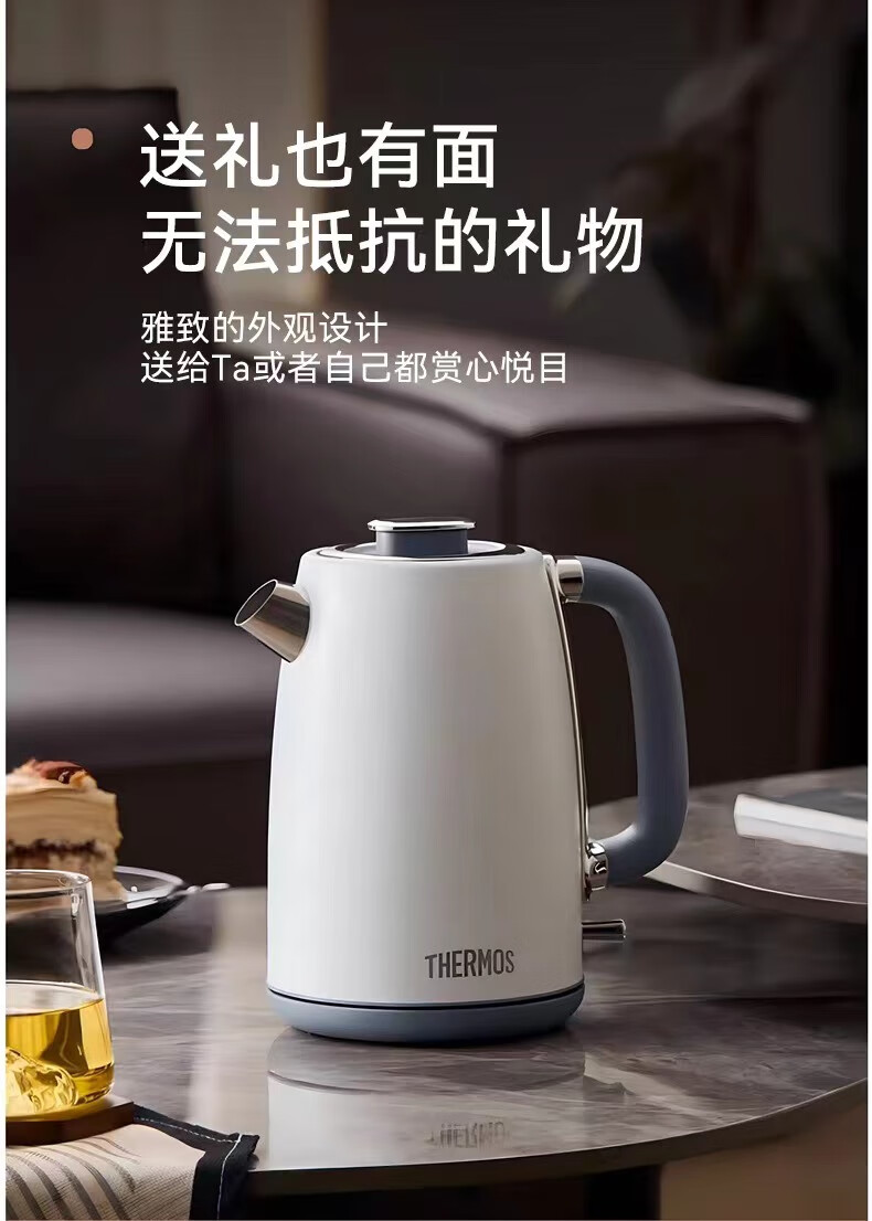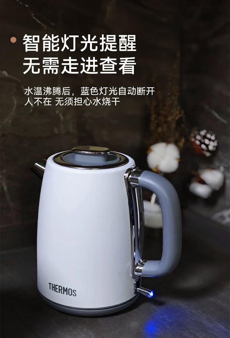 商品名称:膳魔师(THERMOS)电水壶热水壶大容量烧水壶家用304不锈钢母婴级电热开水壶1.7L无缝内胆快速沸腾 膳魔师白 1.7L EHA-1331A