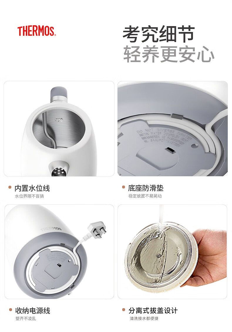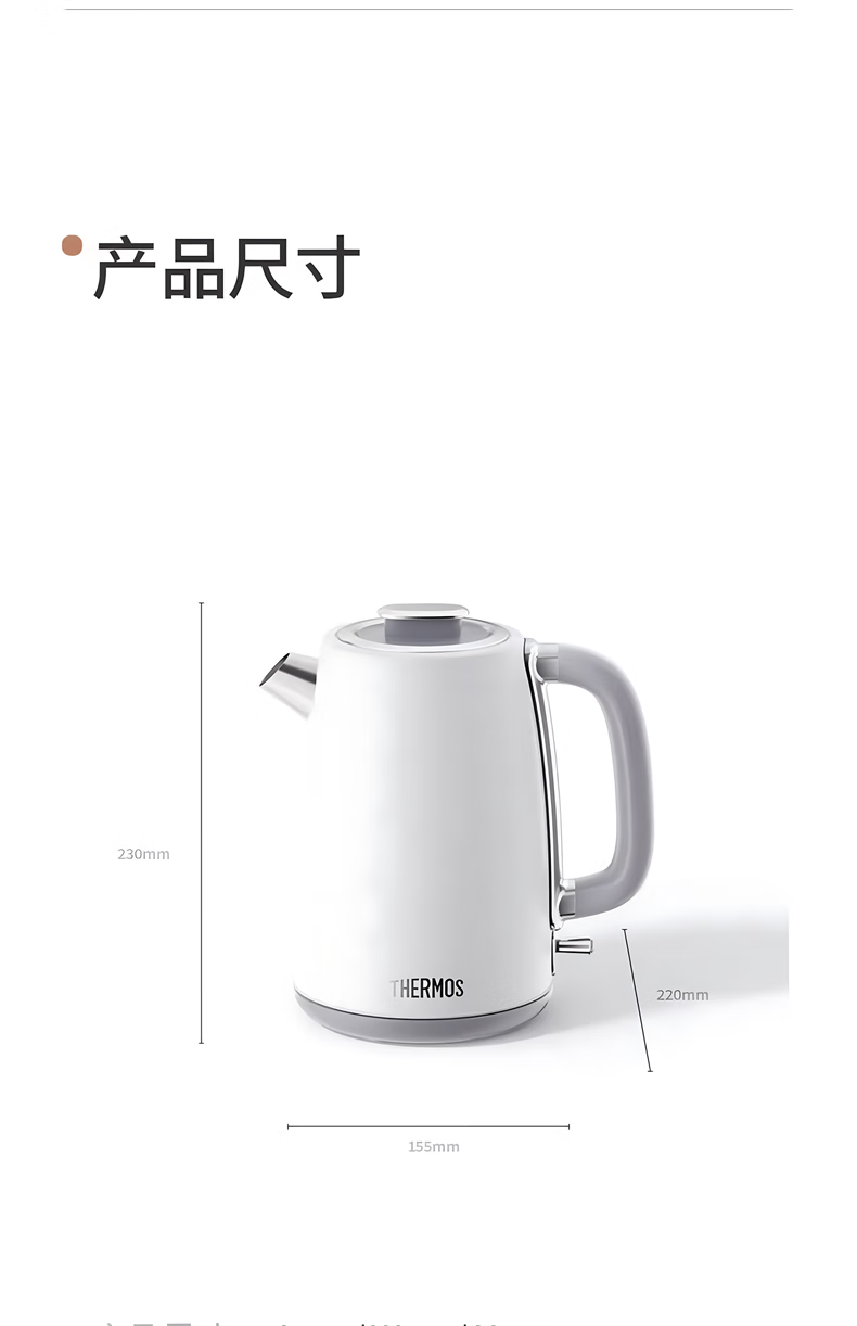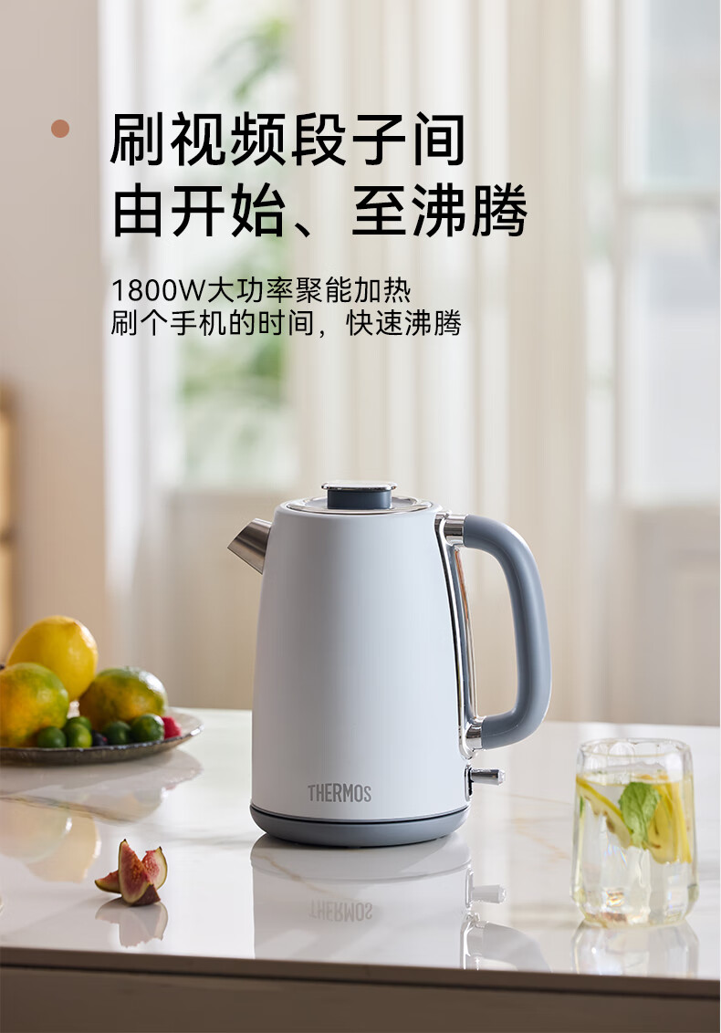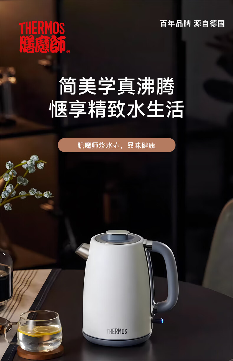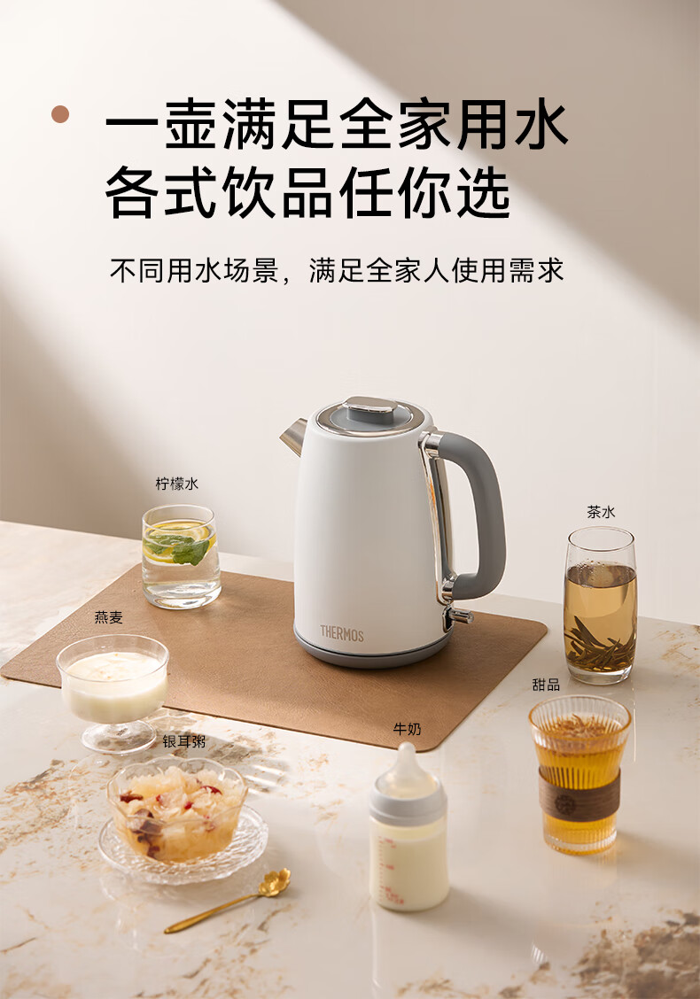 商品名称:膳魔师(THERMOS)电水壶热水壶大容量烧水壶家用304不锈钢母婴级电热开水壶1.7L无缝内胆快速沸腾 膳魔师白 1.7L EHA-1331A