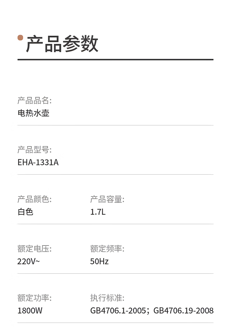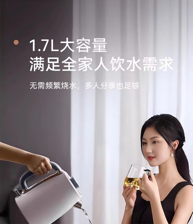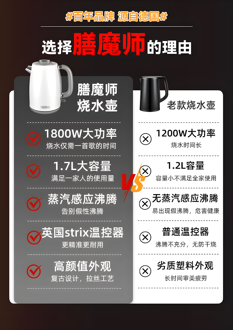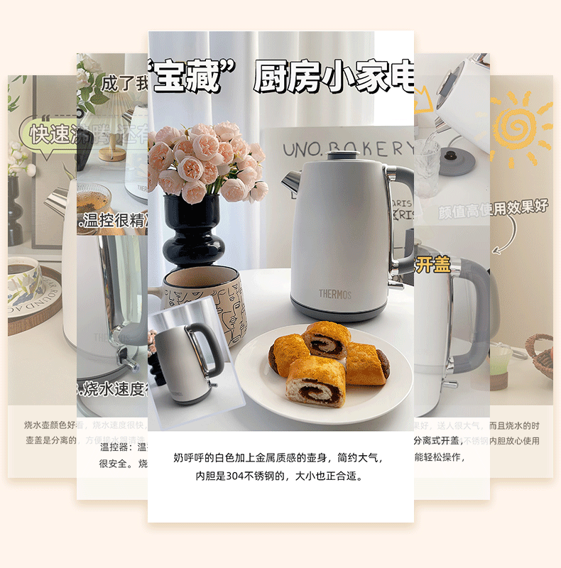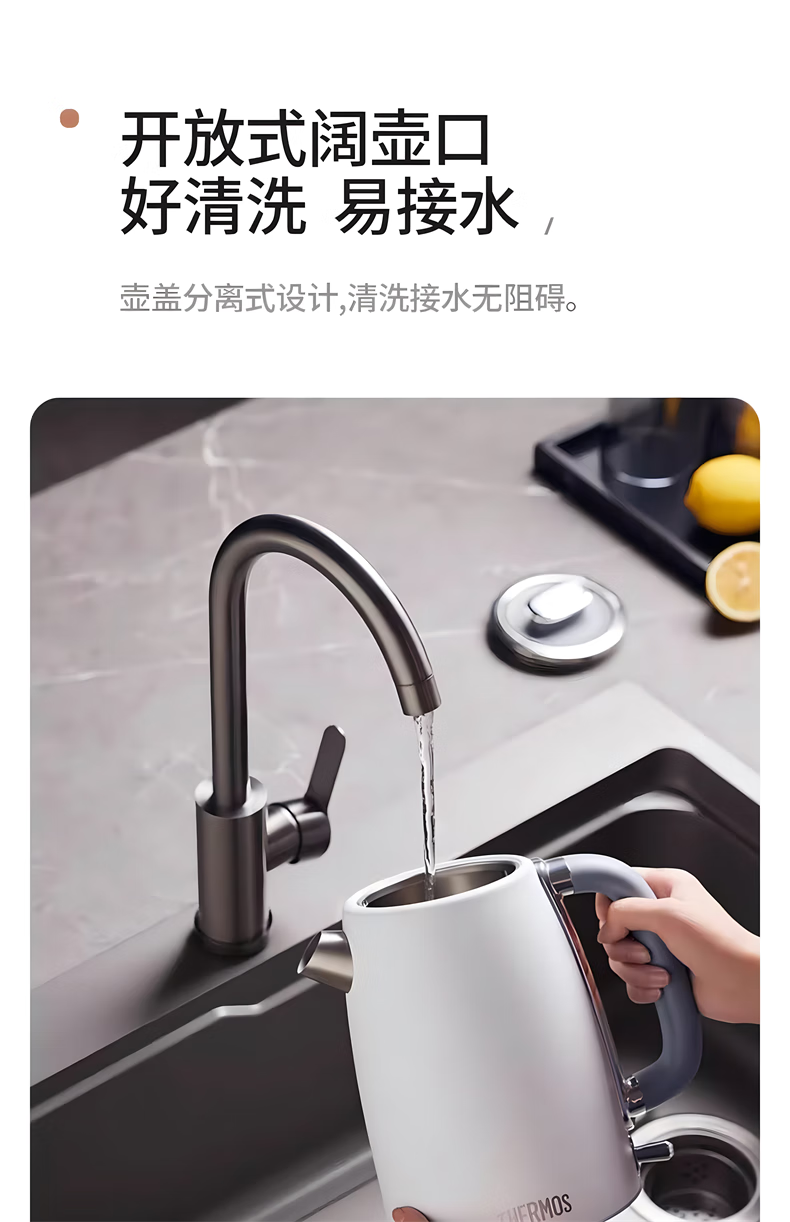 商品名称:膳魔师(THERMOS)电水壶热水壶大容量烧水壶家用304不锈钢母婴级电热开水壶1.7L无缝内胆快速沸腾 膳魔师白 1.7L EHA-1331A