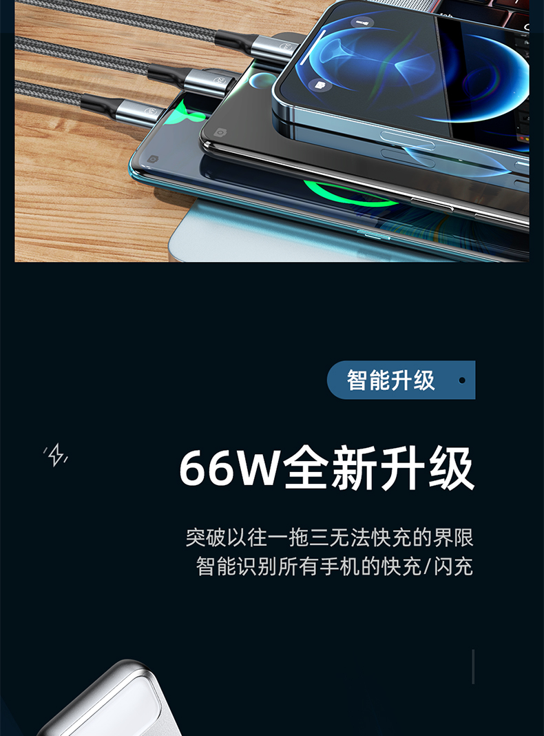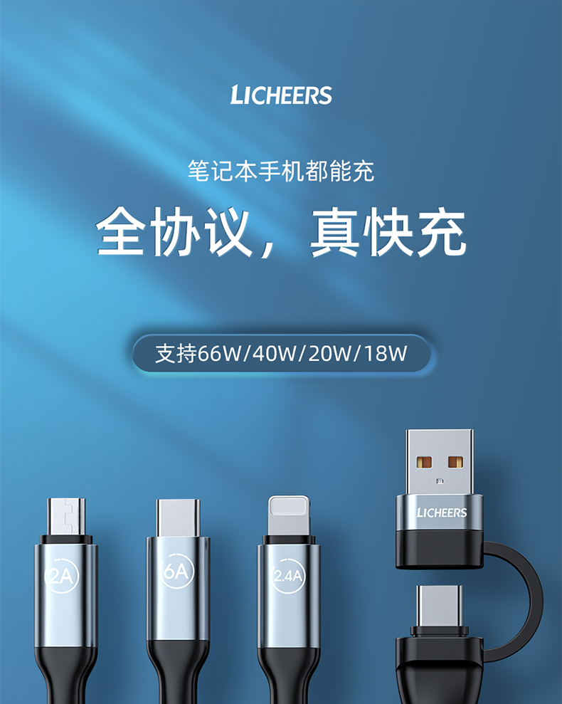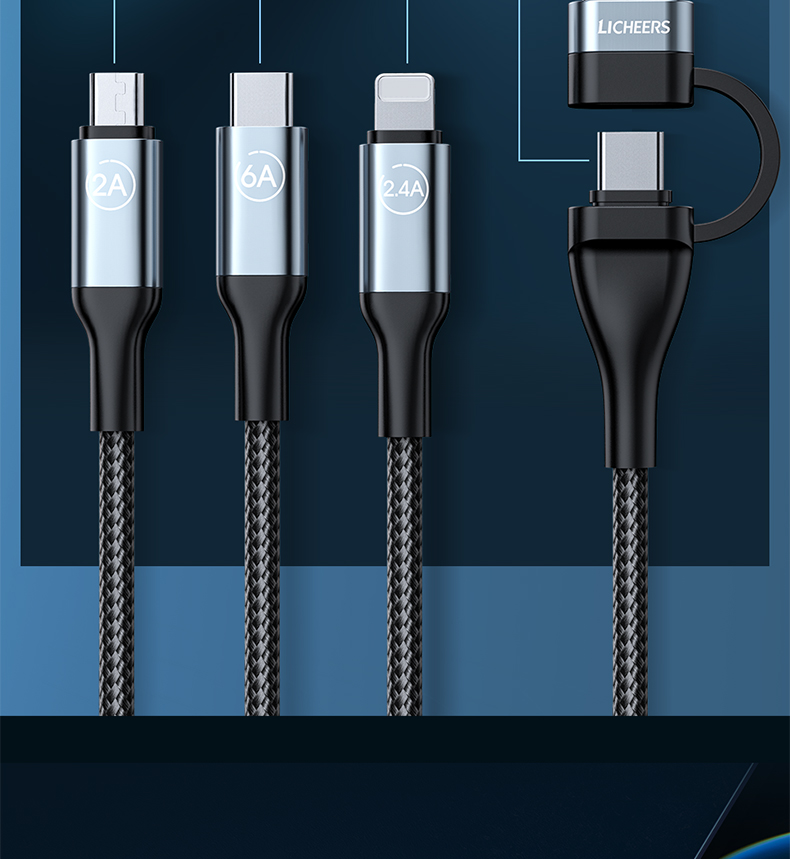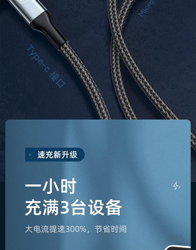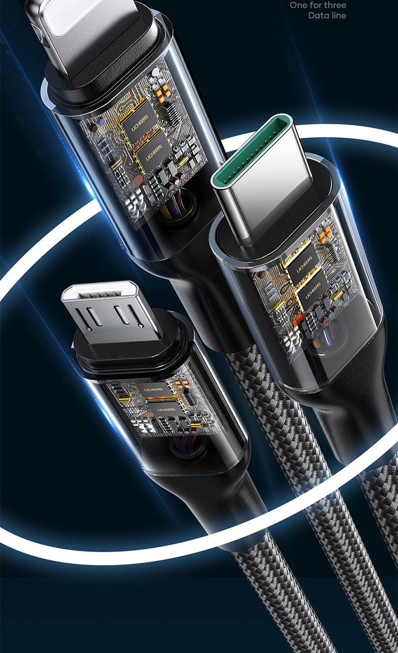 商品名称:领臣 LC-469 1.8米 二拖三超级快充数据线 锖色(单位:根)