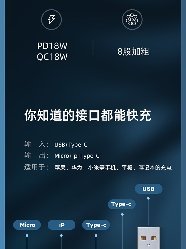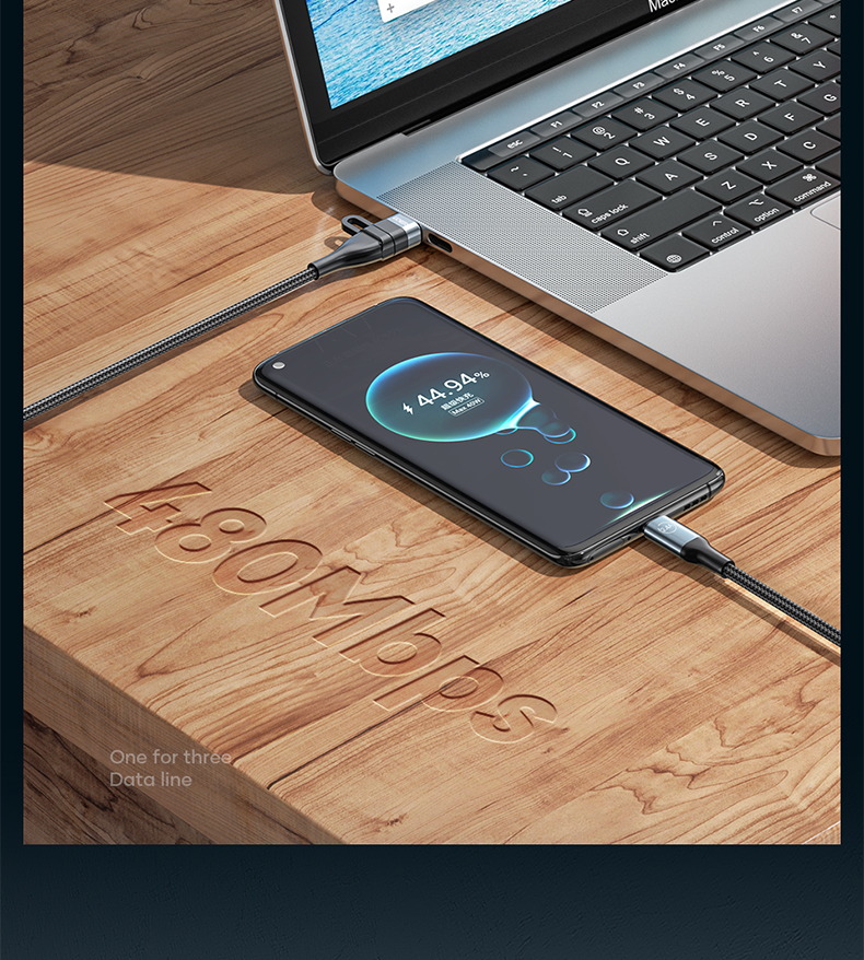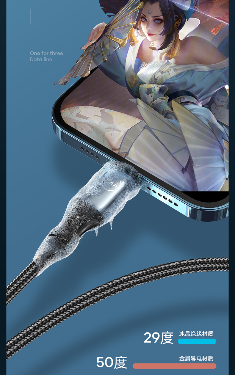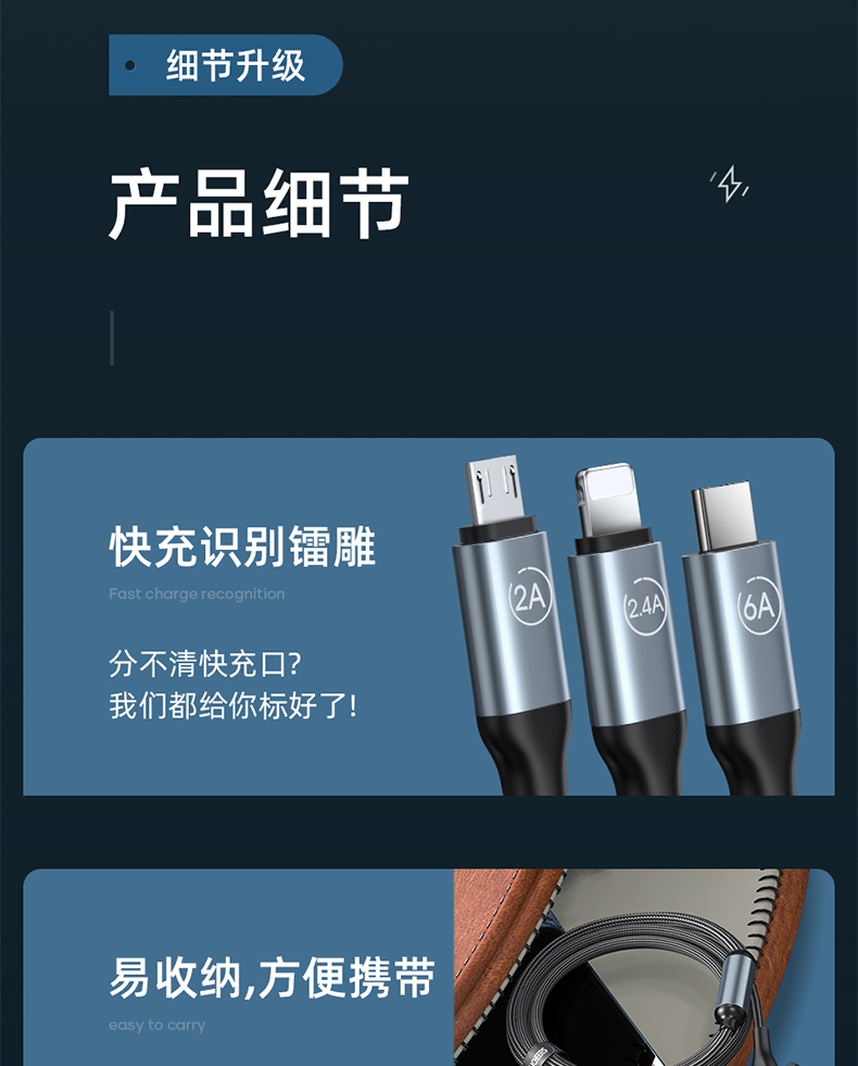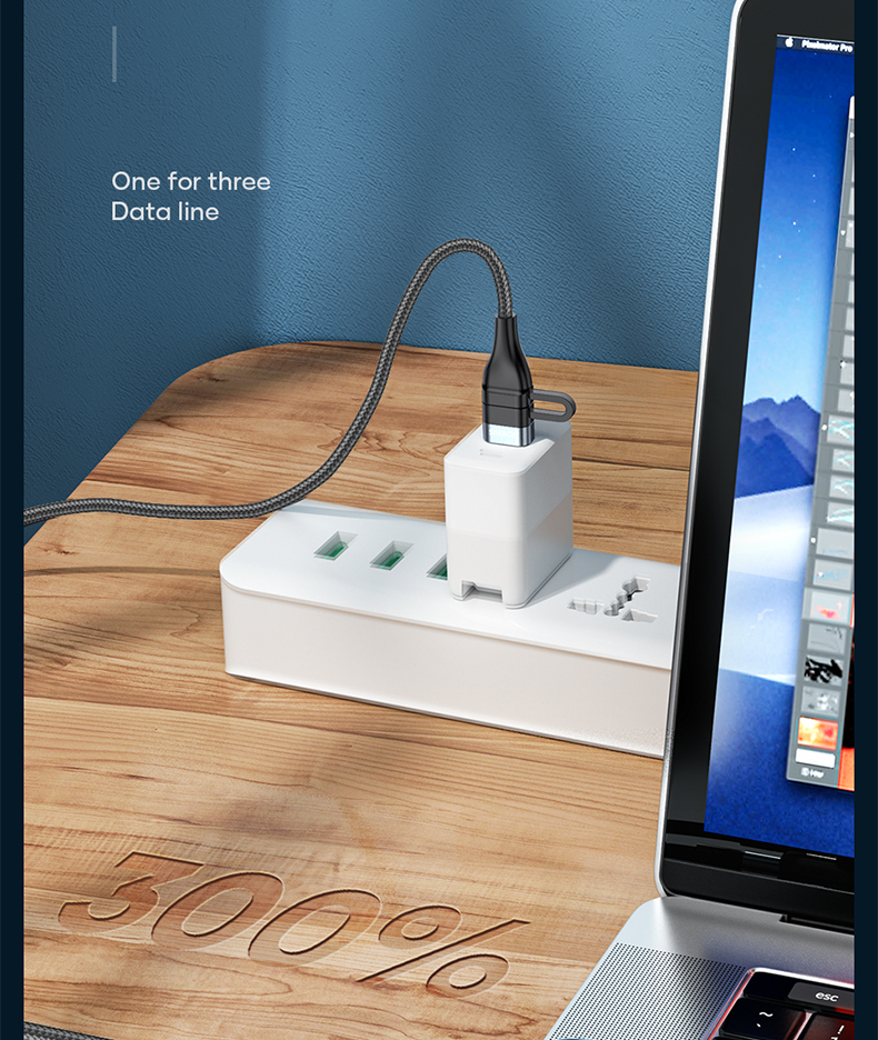 商品名称:领臣 LC-469 1.8米 二拖三超级快充数据线 锖色(单位:根)