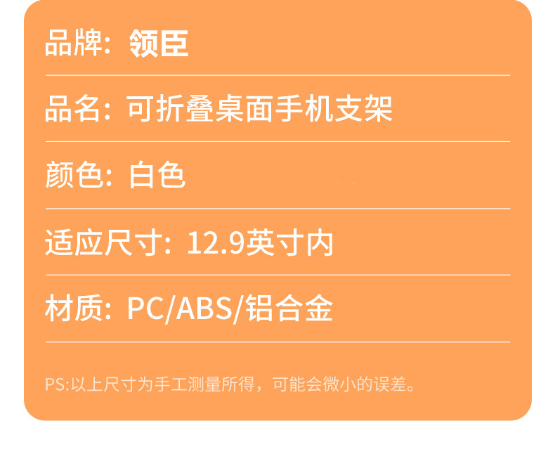商品名称:领臣 LC-352 手机便携伸缩支架 白色(单位:个)