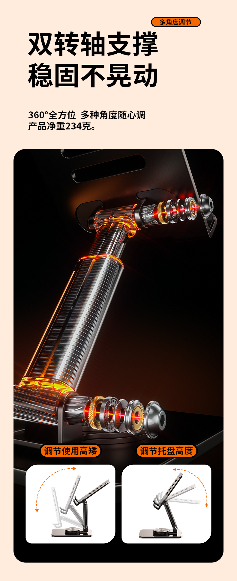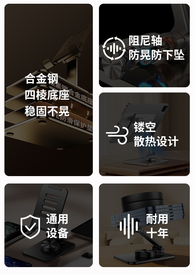 商品名称:领臣 K9 手机、平板、学习机金属旋转支架 枪色(单位:个)