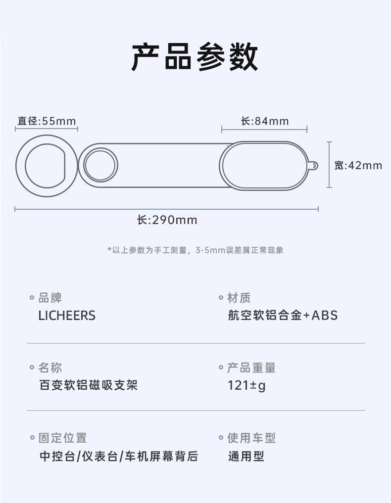 商品名称:领臣 LC-SKR07 通用性 软铝磁吸支架 黑色(单位:个)