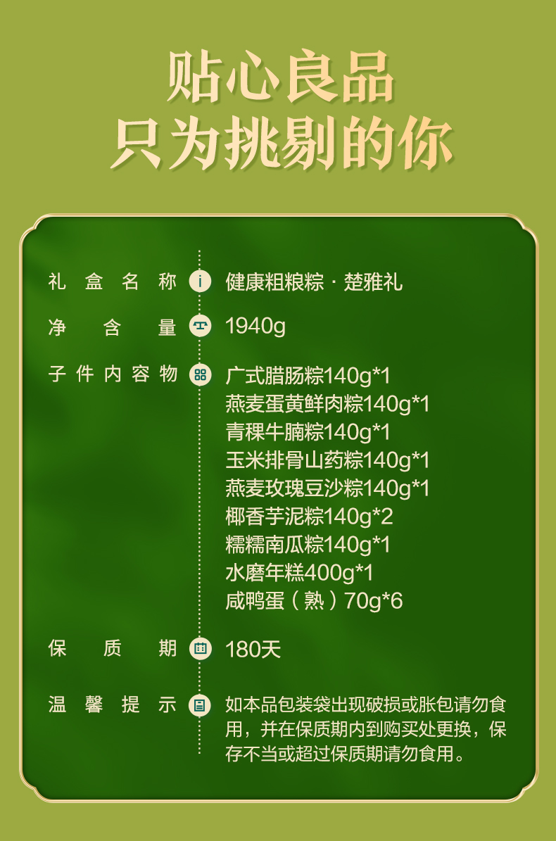 商品名称:良品铺子 1940g 健康粗粮粽·楚雅礼(单位:盒)